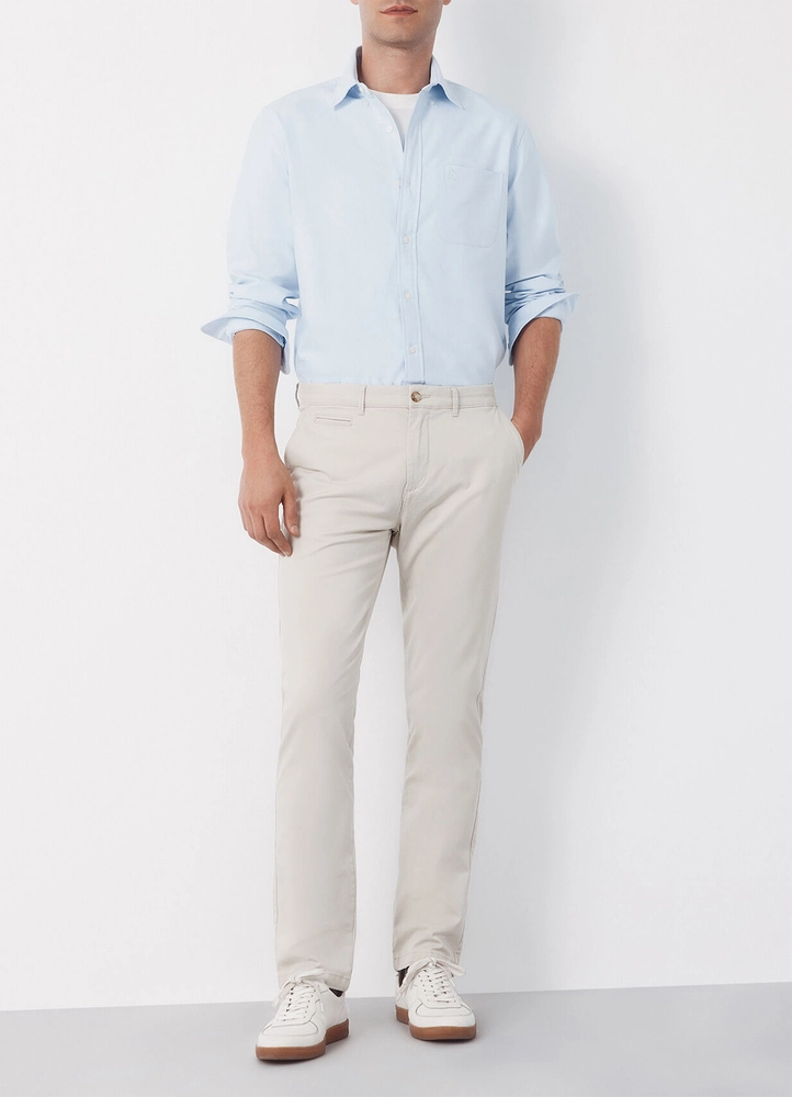 Slim fit chino pants with button and zipper closure, enhanced by elastane for greater comfort.