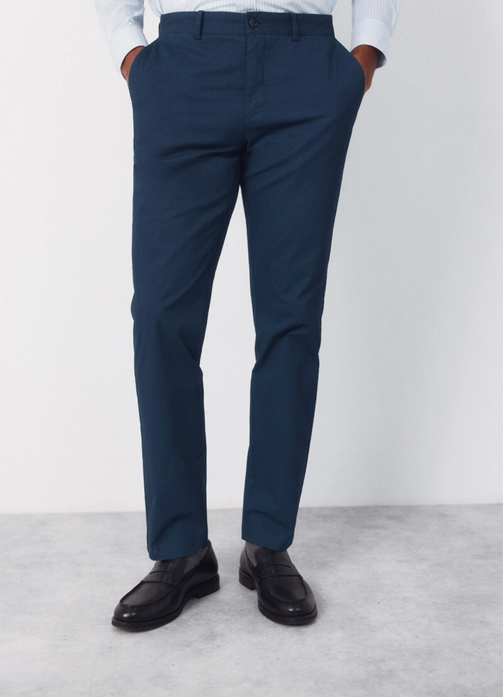 Regular fit chino pants featuring lightweight printed fabric with button and zipper closure, enhanced with elastane for comfort and freedom of movement.