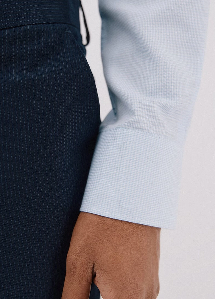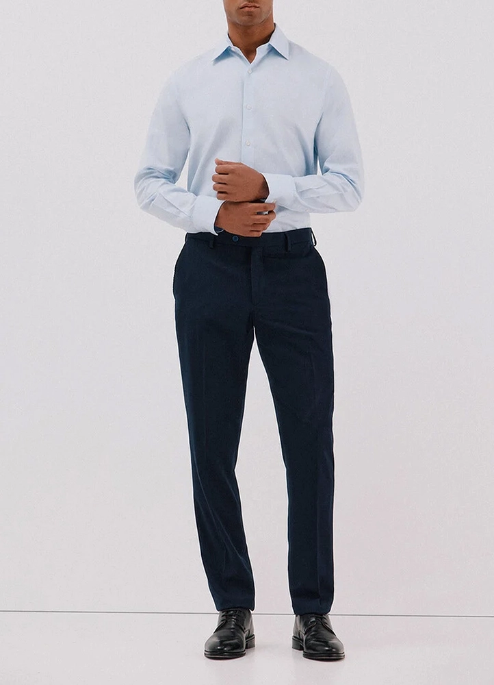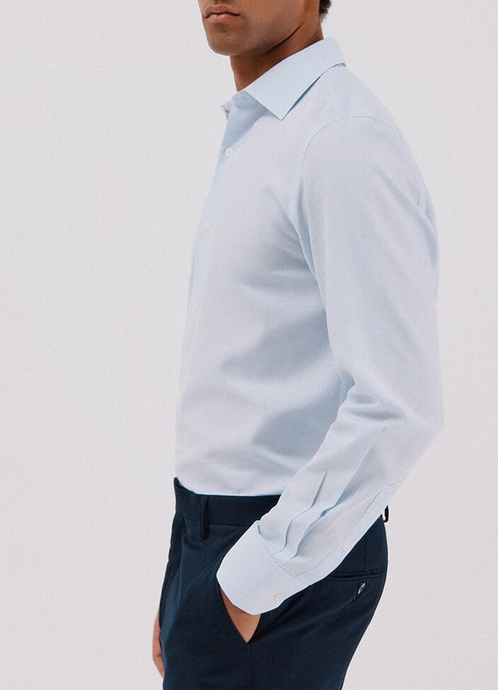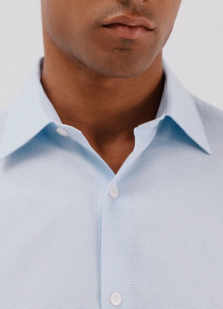 This tailored-fit shirt is made from cotton blended with Tencel™ lyocell, offering thermoregulatory comfort, exceptional softness to the touch, a dress collar with removable whales, and easy-iron convenience.