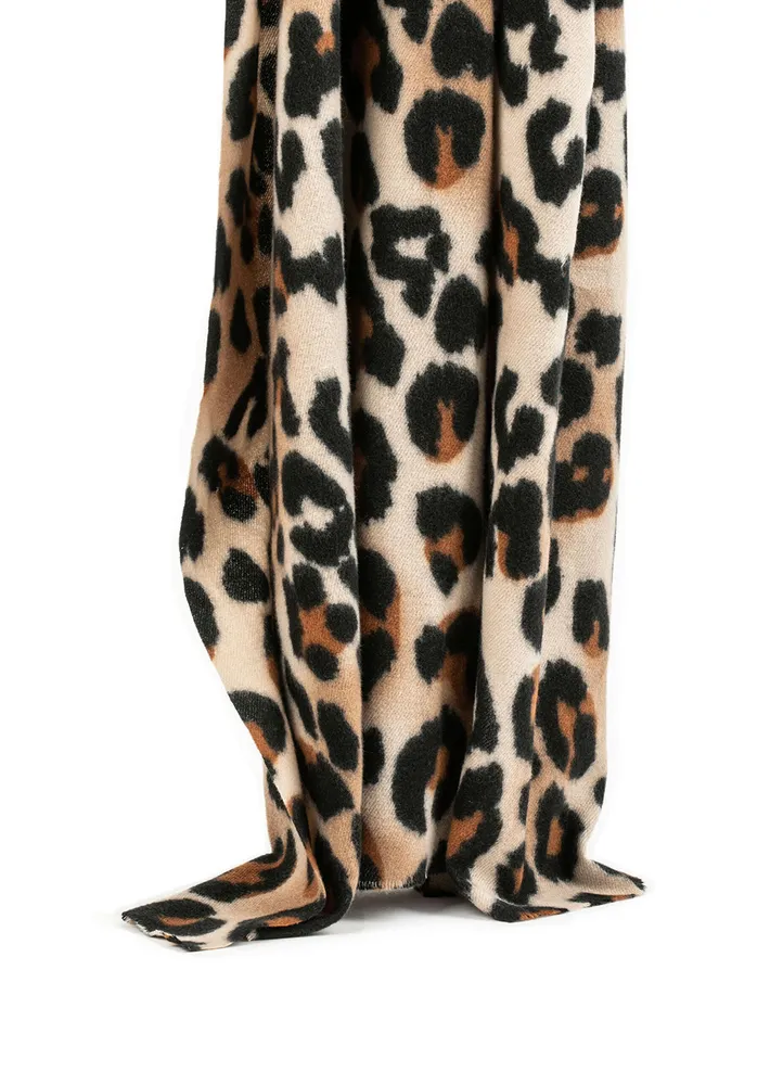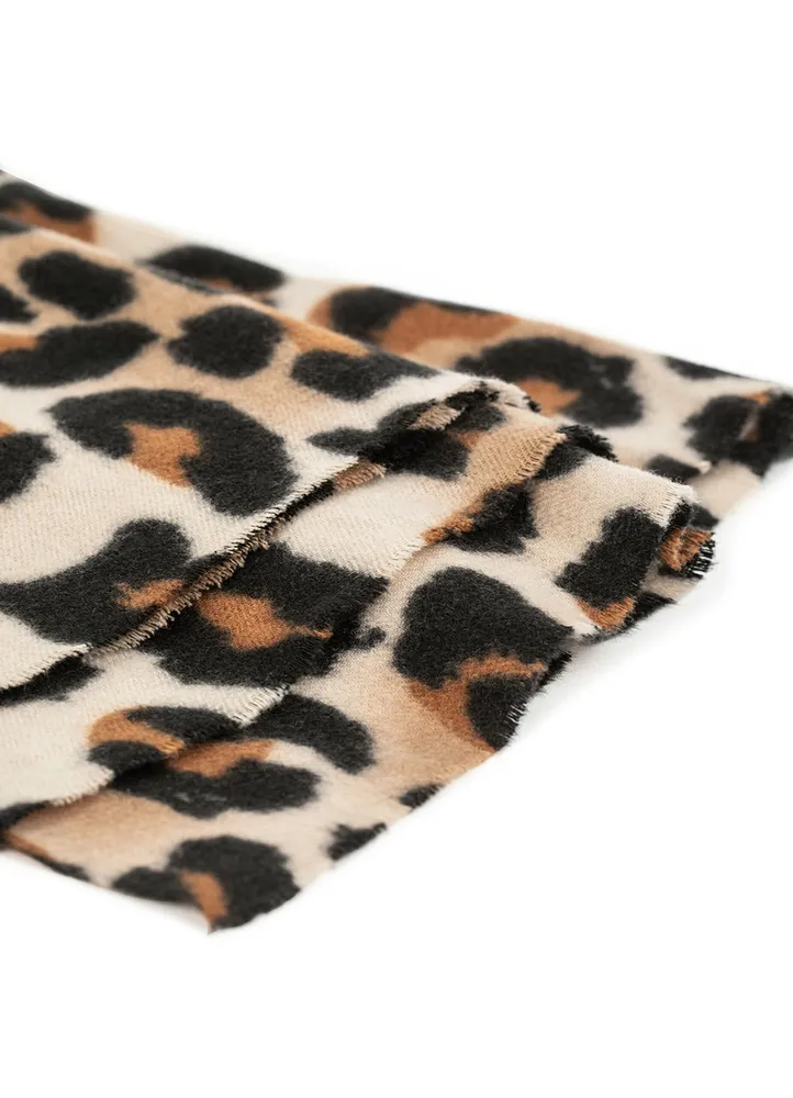 Leopard print scarf with fringe detailing