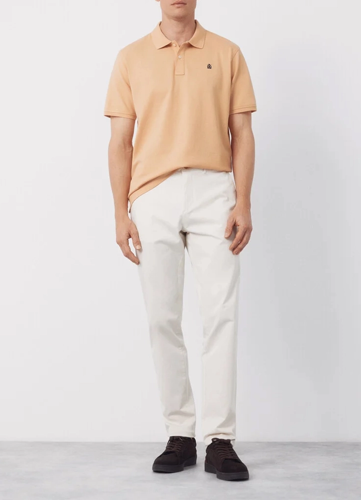 Short sleeve, regular fit, piqué structured fabric polo shirt featuring a button placket, and an embroidered logo on the chest.