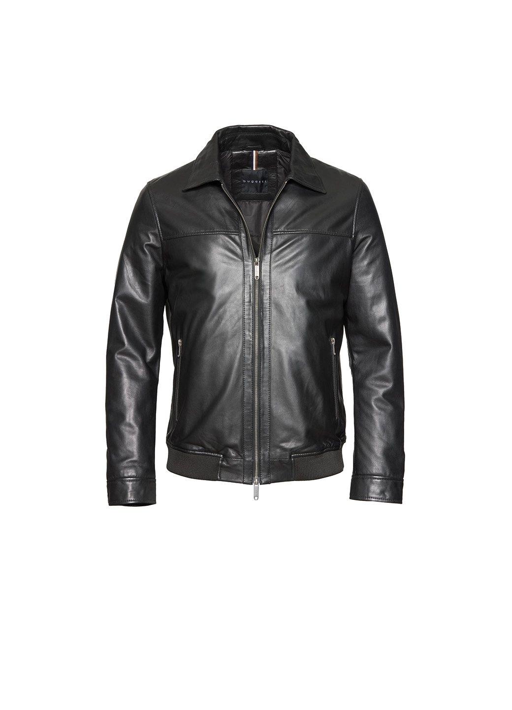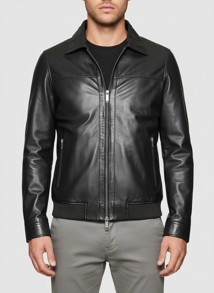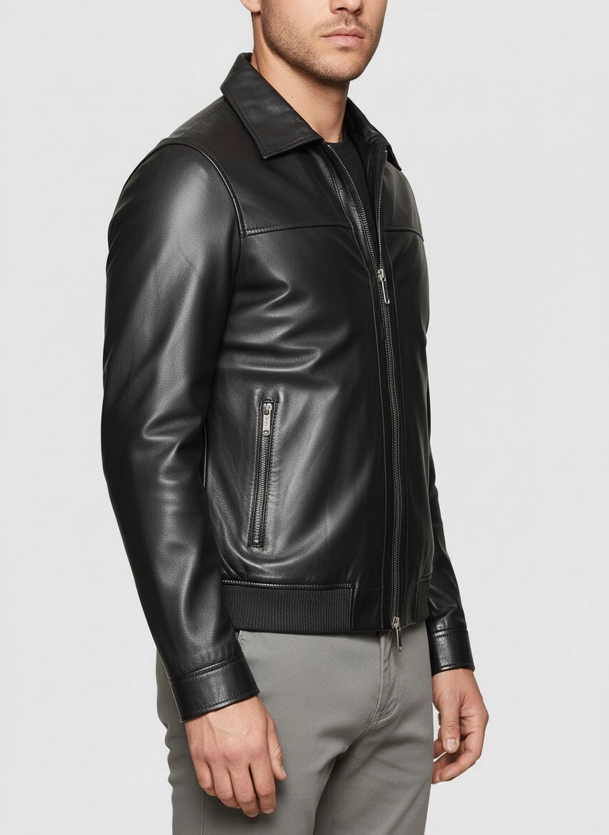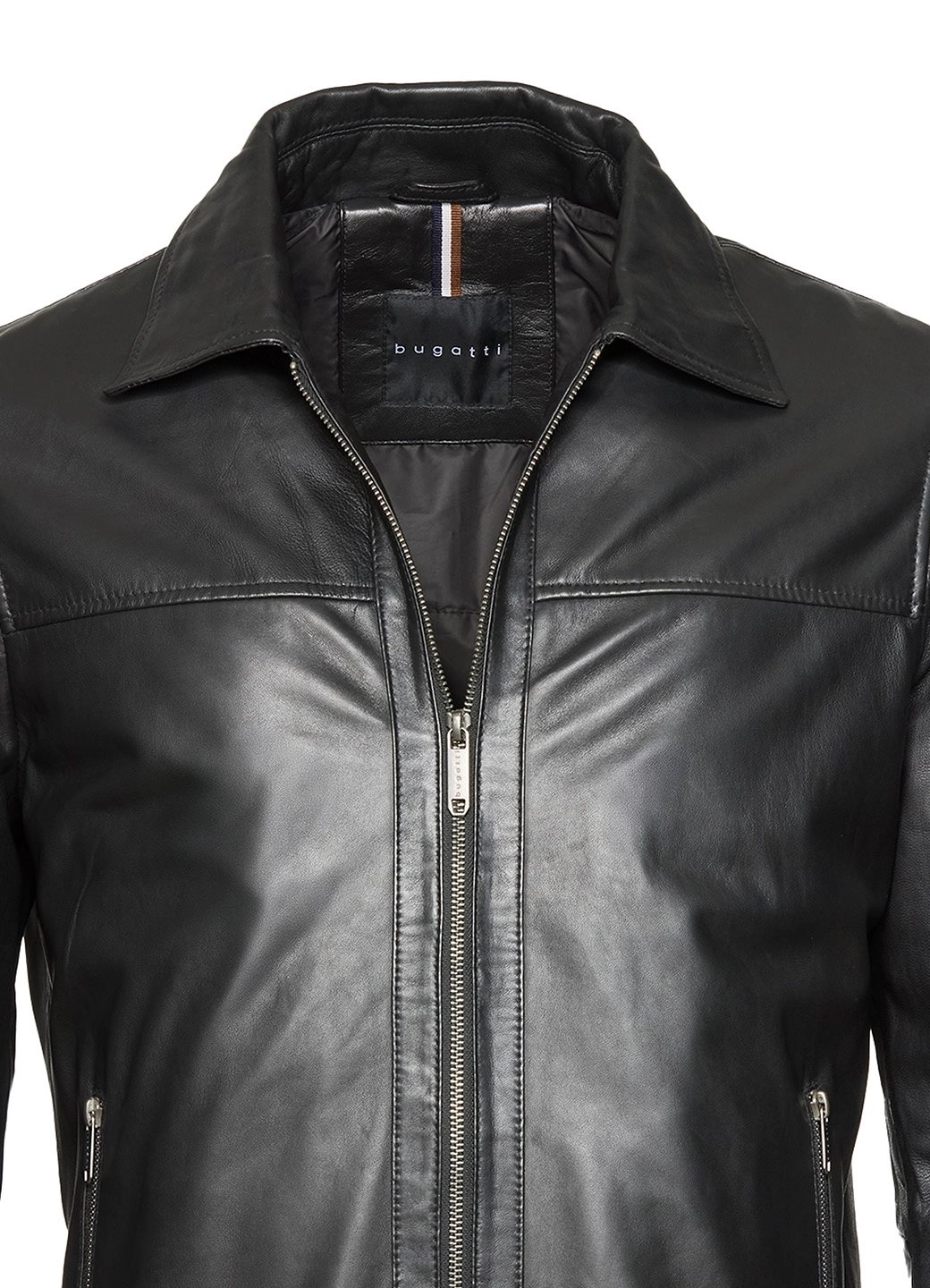 Short Jacket.Lamb leather full zip short jacket with shirt collar and zipped pockets.100% Lamb Leather.