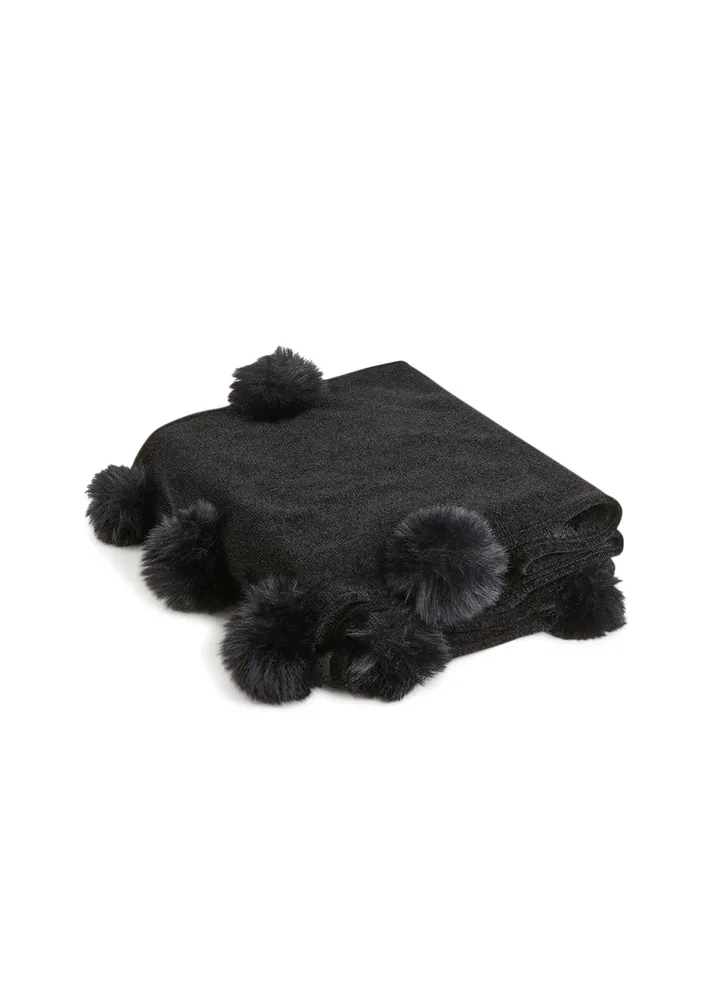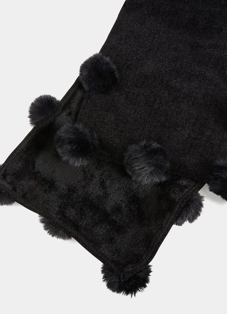 Lined Scarf with Faux Fur Pom-Poms