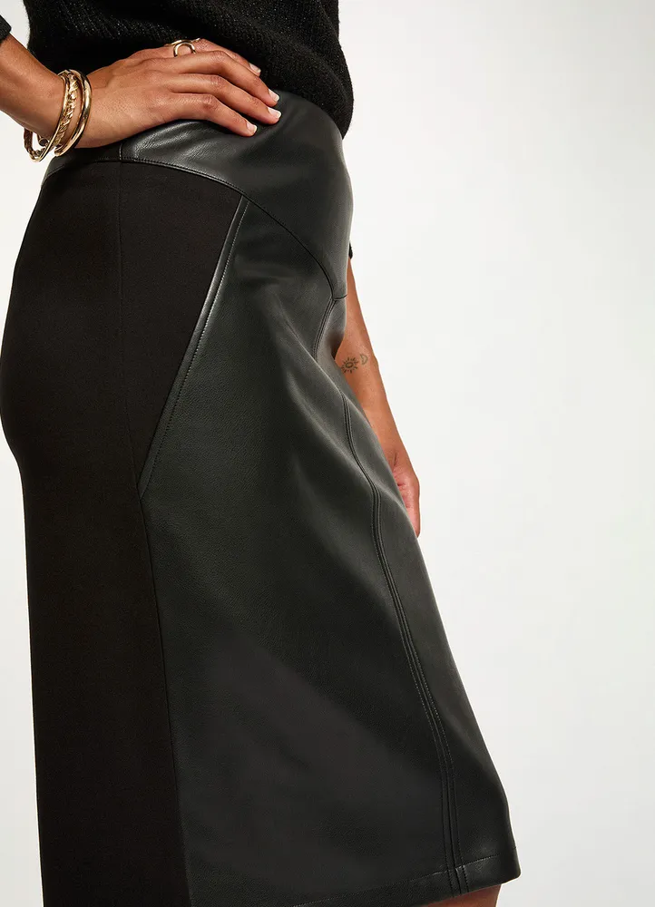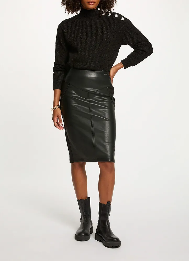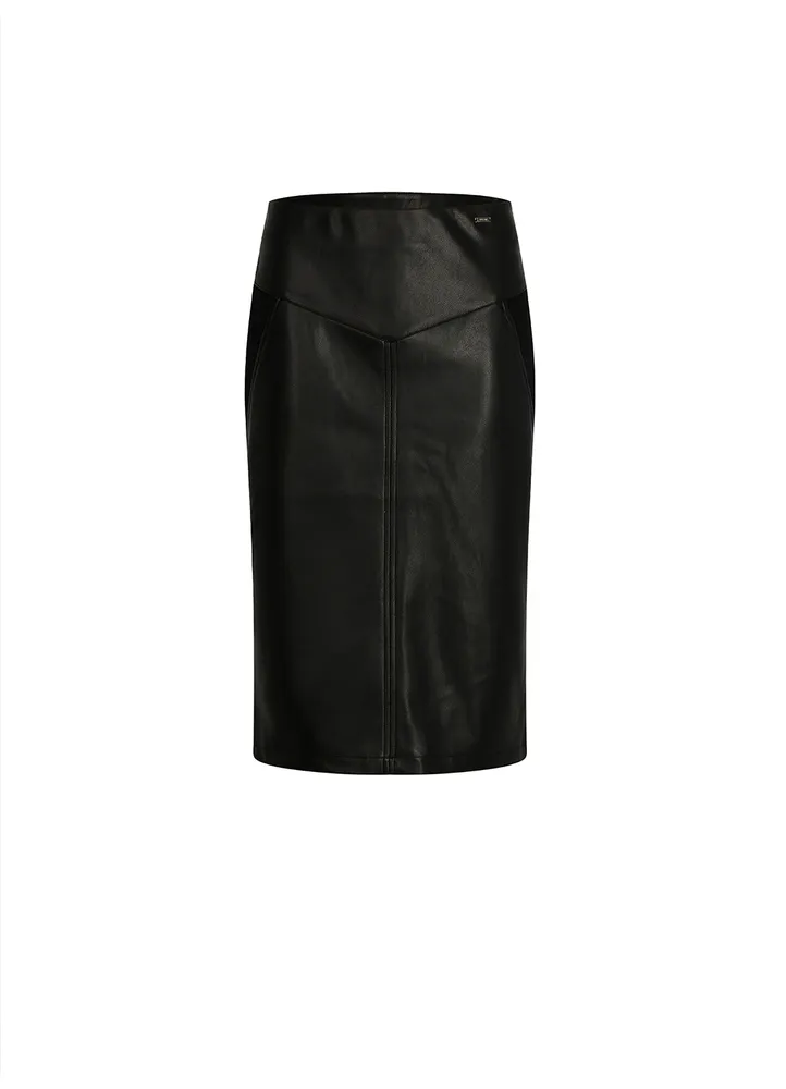 Knee-length fitted faux leather skirt