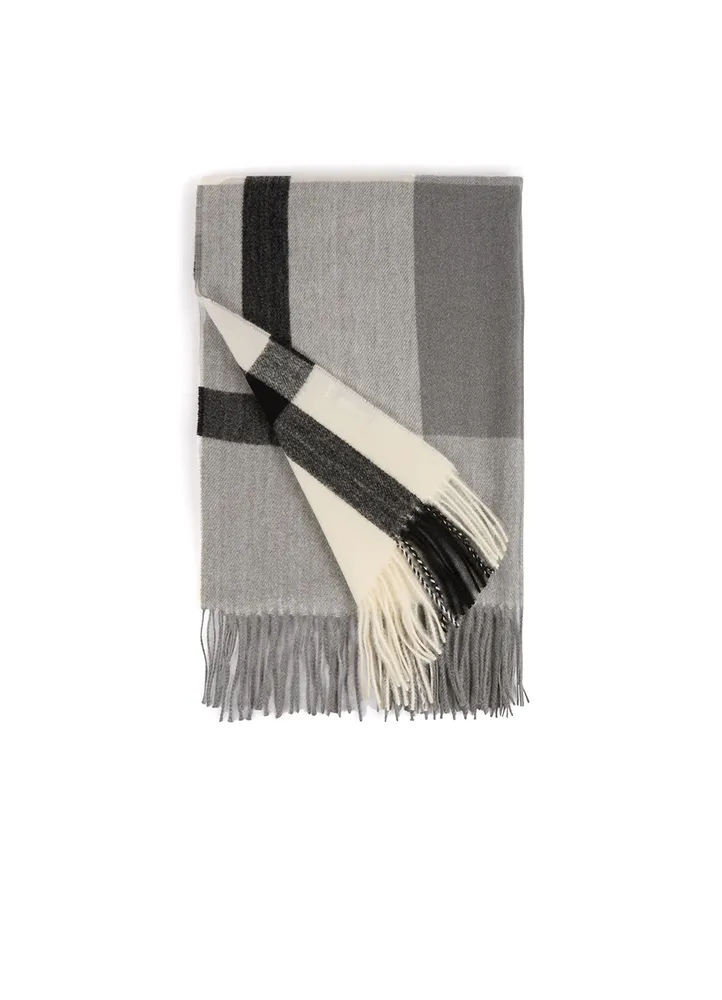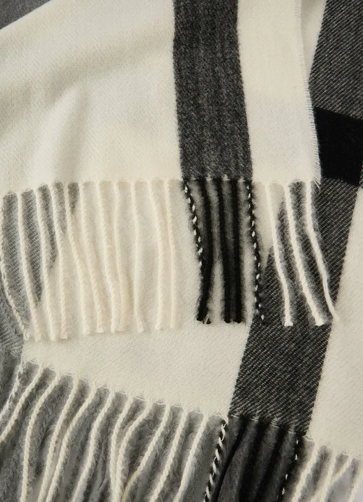 Checked scarf with fringed edges