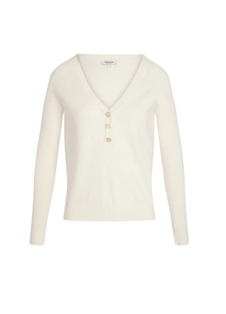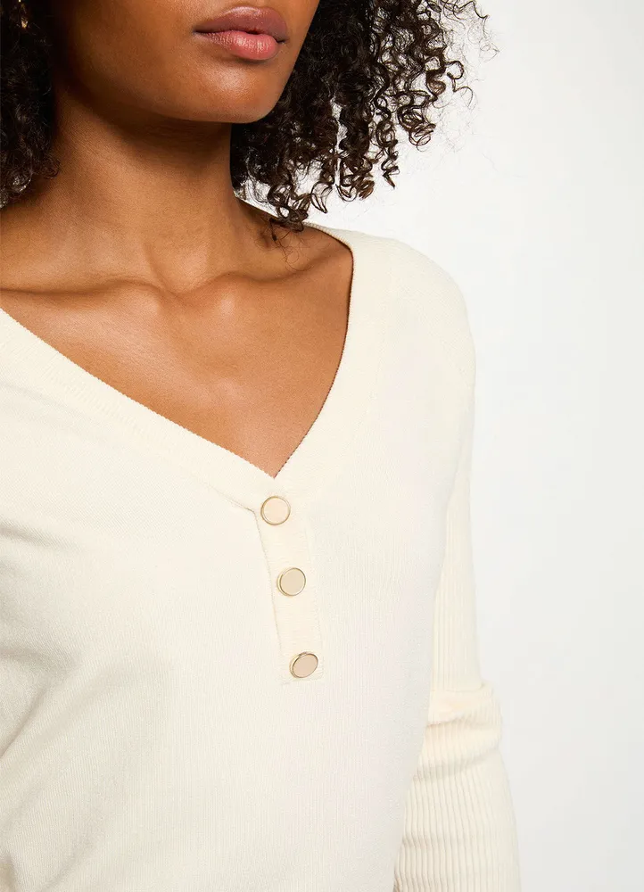 This cropped, fitted sweater blends femininity and modernity with a silhouette-enhancing cut. Delicately placed buttons add a refined, sophisticated touch, elevating its chic appeal. The cropped design defines the waist and structures the figure, creating a confident, on-trend look for any occasion.