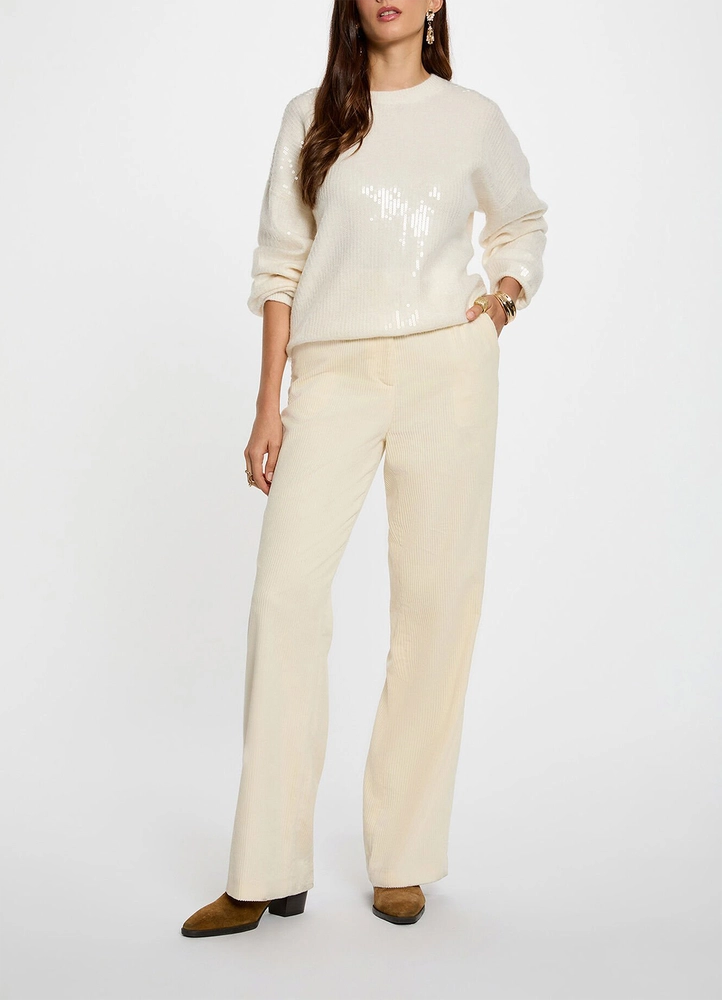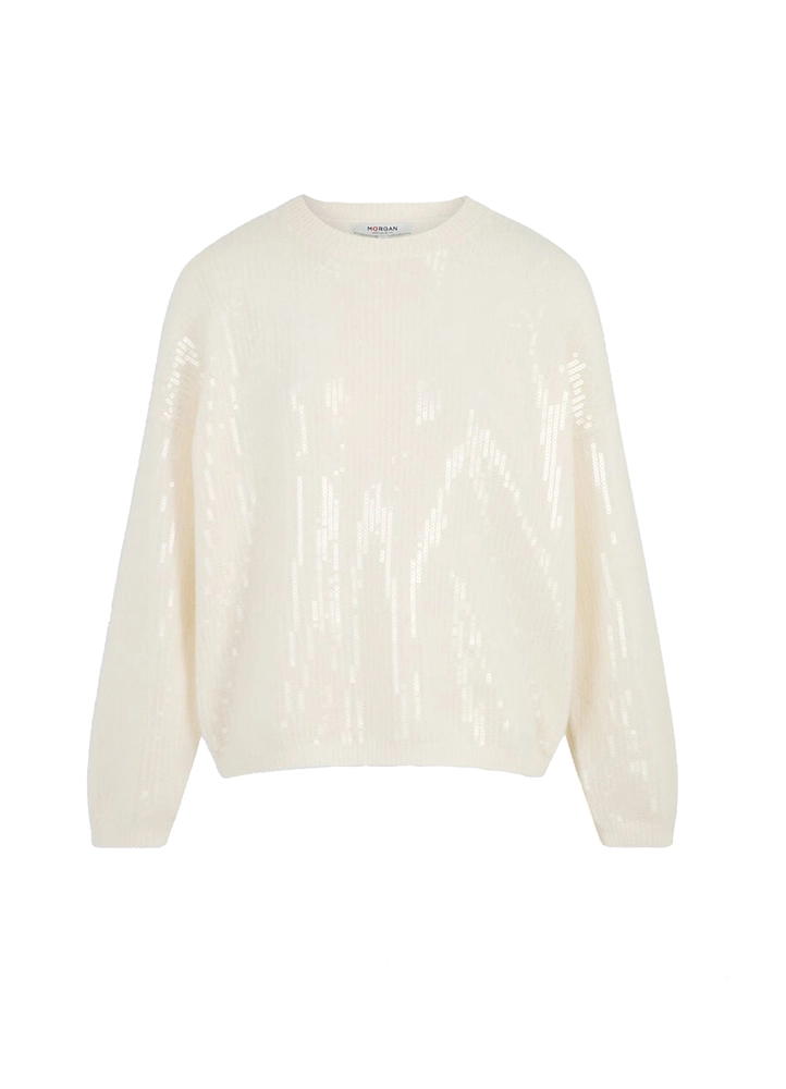 This straight sweater perfectly balances modernity and elegance with a casual chic style. Subtle sequins add a luminous touch, bringing a trendy sparkle to any outfit. Its timeless straight cut flatters all body shapes, making it an essential piece in a refined, feminine wardrobe.