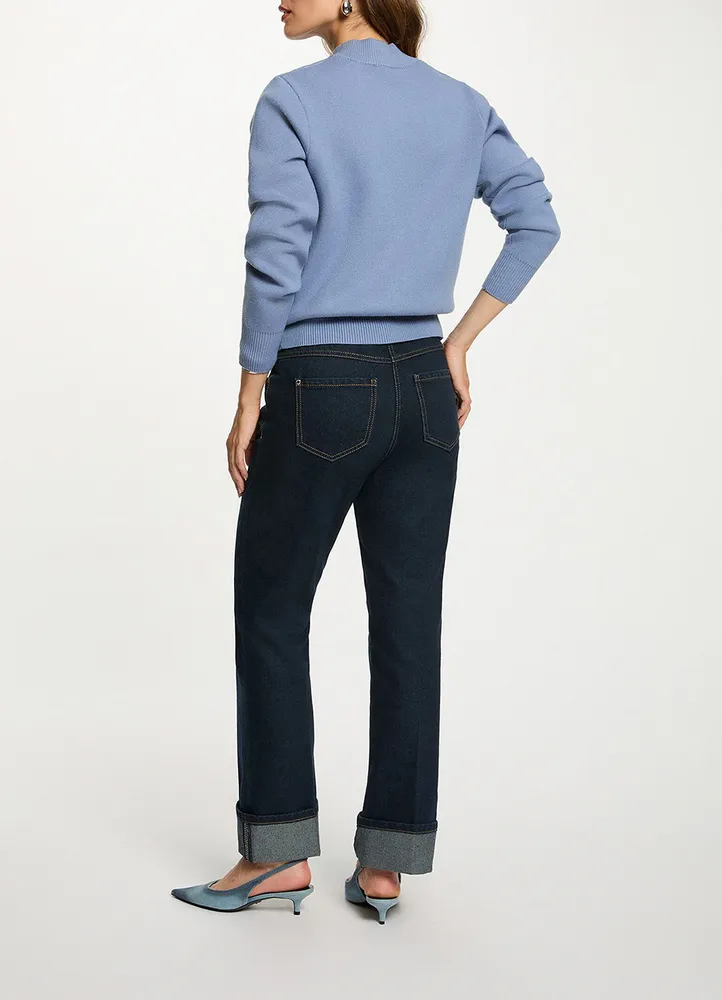 These straight-cut jeans exude timeless chic and flatter all body shapes. Rhinestone accents add a luminous, feminine touch, while stone-adorned buttons enhance the piece with subtle elegance. A sophisticated addition to elevate your everyday wardrobe.