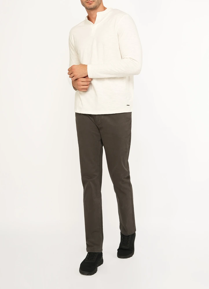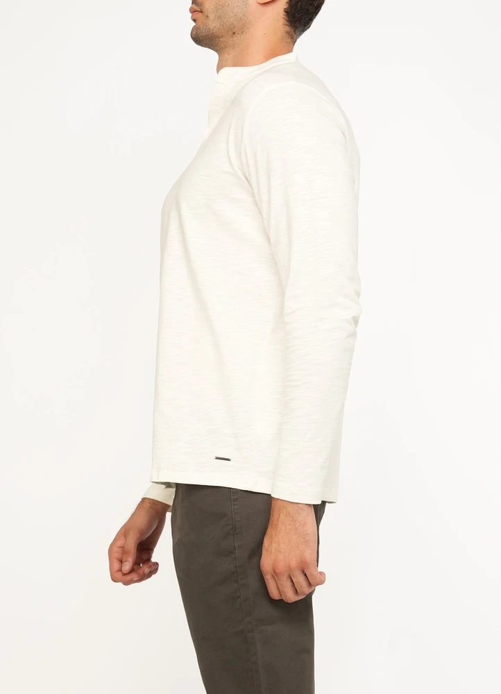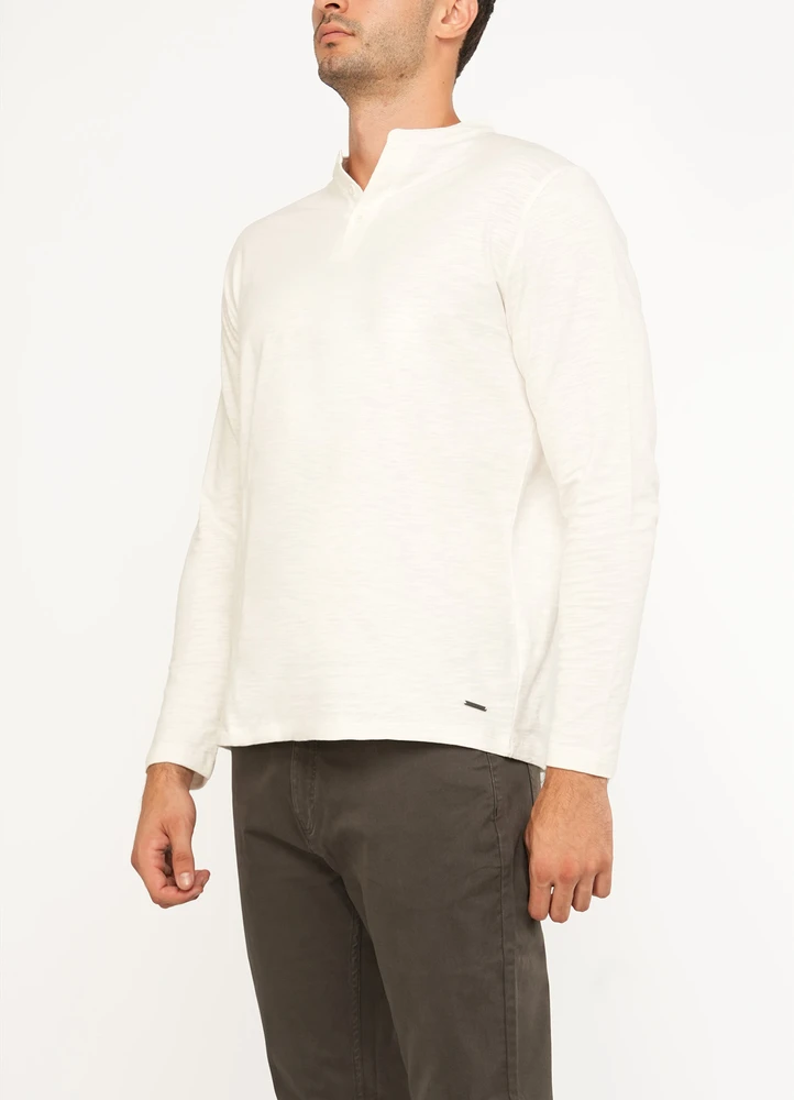 Slub plain henley long sleeve t-shirt with Maison Brown metal branding on bottom.