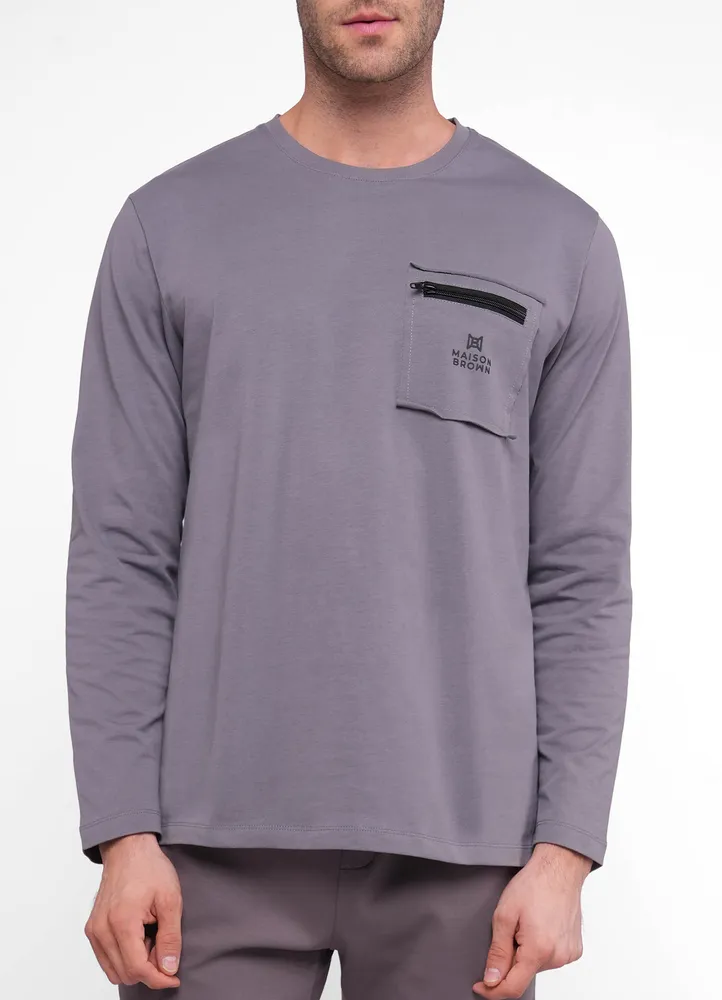 T-shirt with raw chest pocket and zip contrast featuring Maison Brown on it.