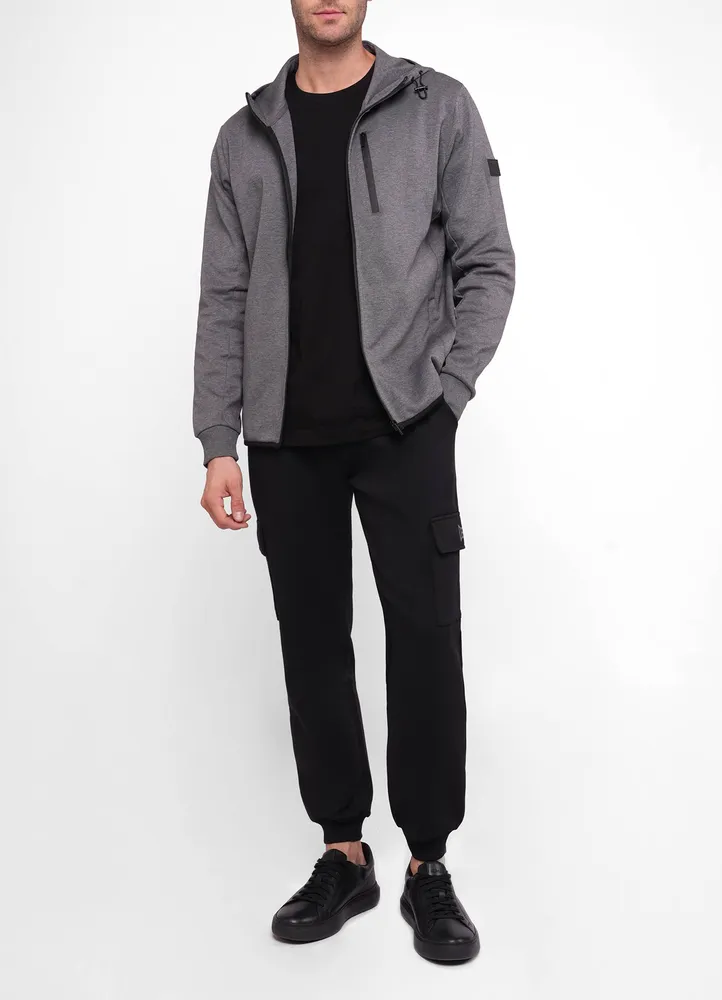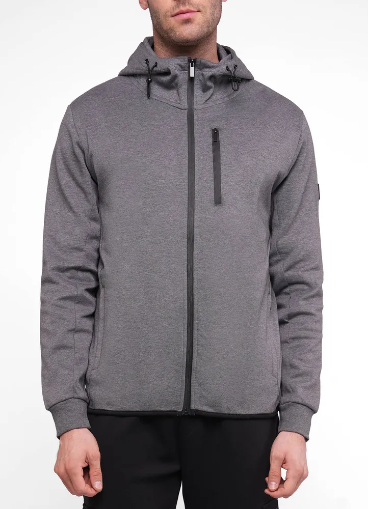 Full zip hooded sweatshirt w scuba chest zip pocket w MB square badge on arm.