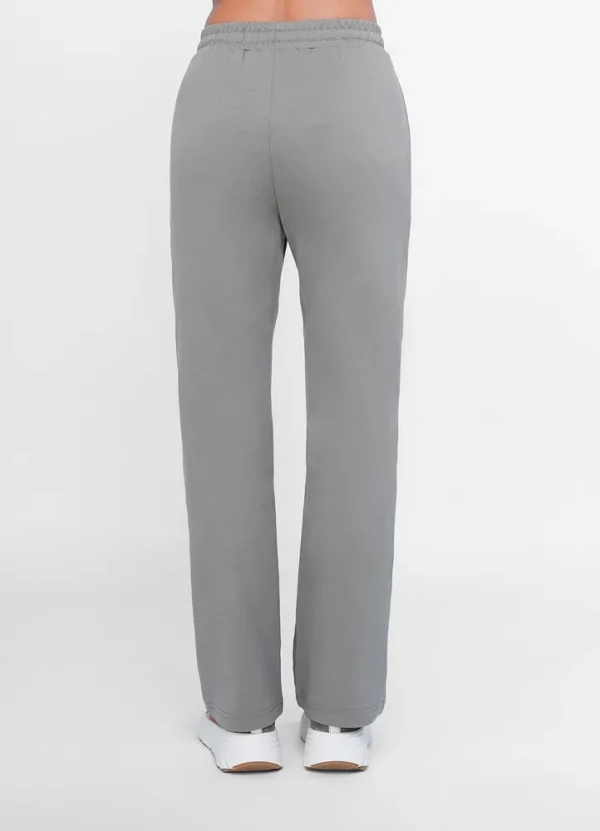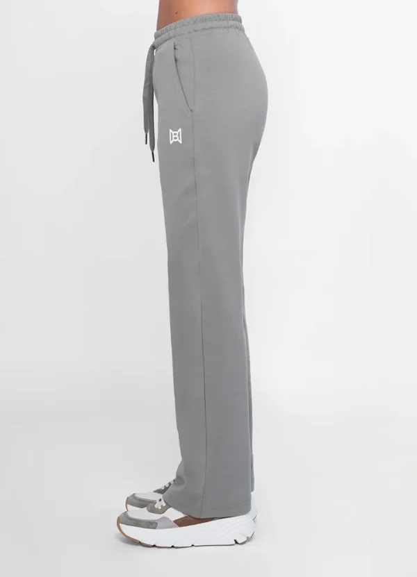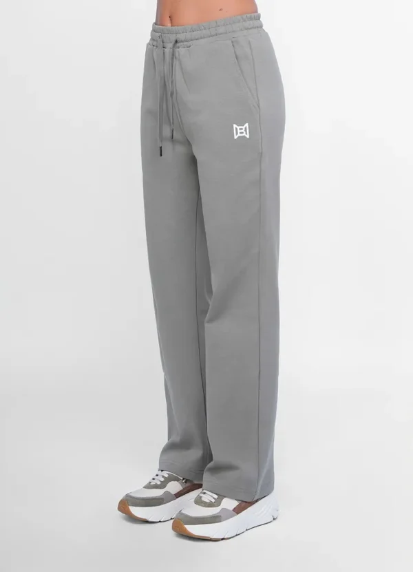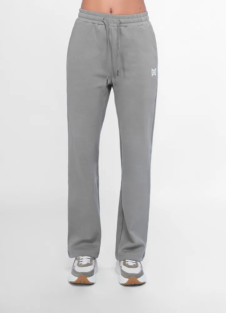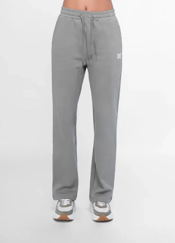 Straight leg sweatpants with elastic waist, drawstring, pockets and logo on side.