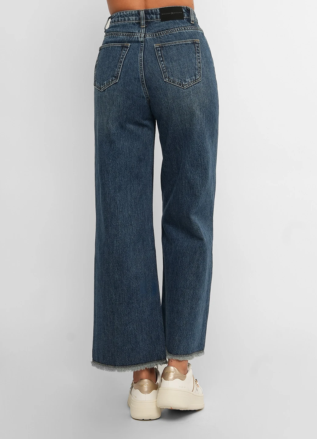 JeansRegular fit, high waist, cropped leg denim with ripped hem. Whether you’re glamming up for a night out or dressing down for a cozy night in, our Maison Brown jeans will be with you every step of the way.100% Cotton.