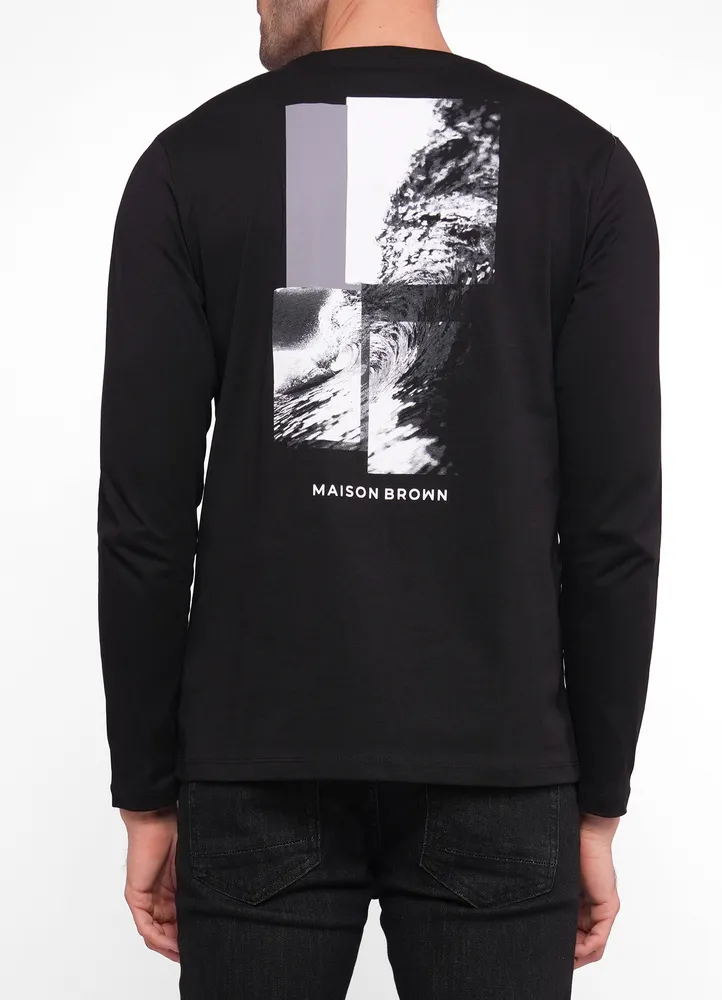T-shirt with waves back print and square rubber Maison Brown badge on chest.