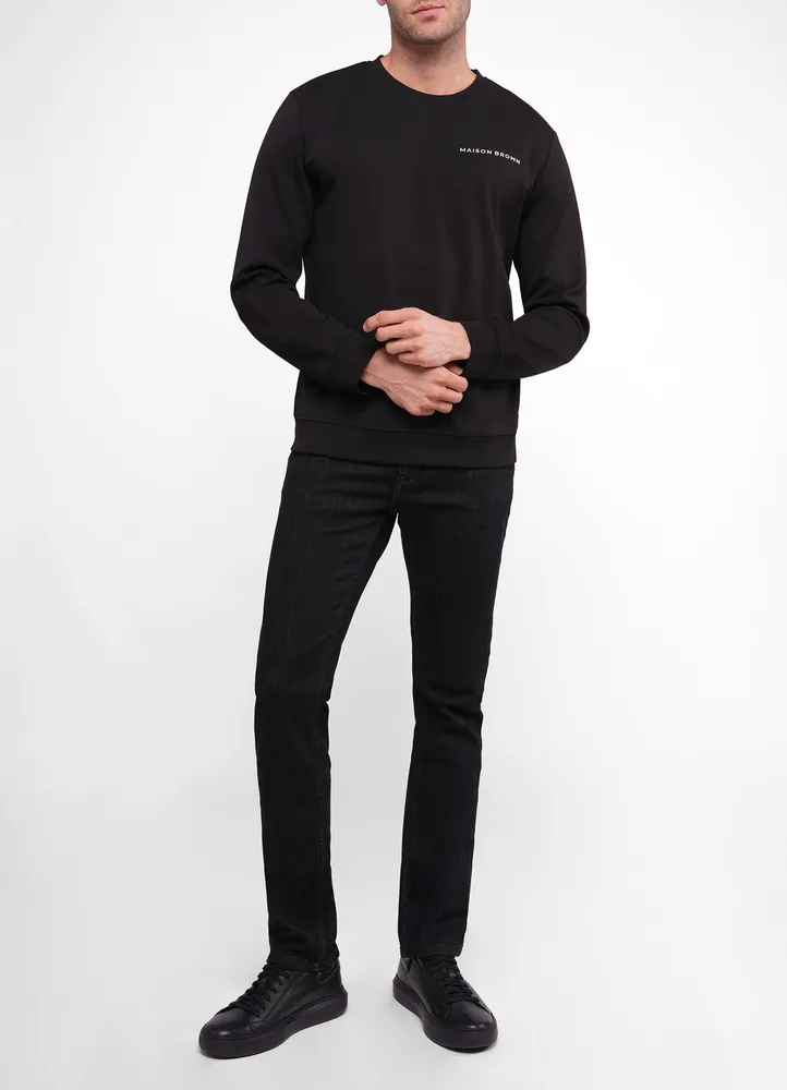 Cotton mix crew neck sweatshirt with big Maison Brown logo print on back and small Maison Brown on front chest.