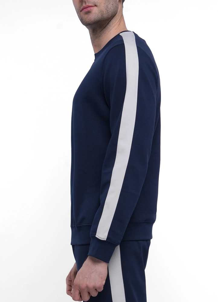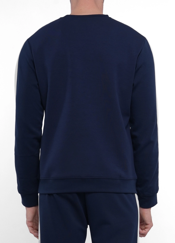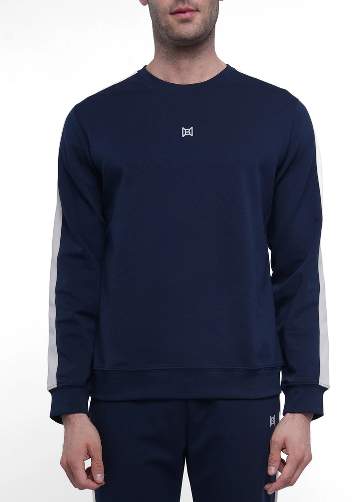 Crew neck sweatshirt with contrast stripe on arms and mid Maison Brown logo on chest.