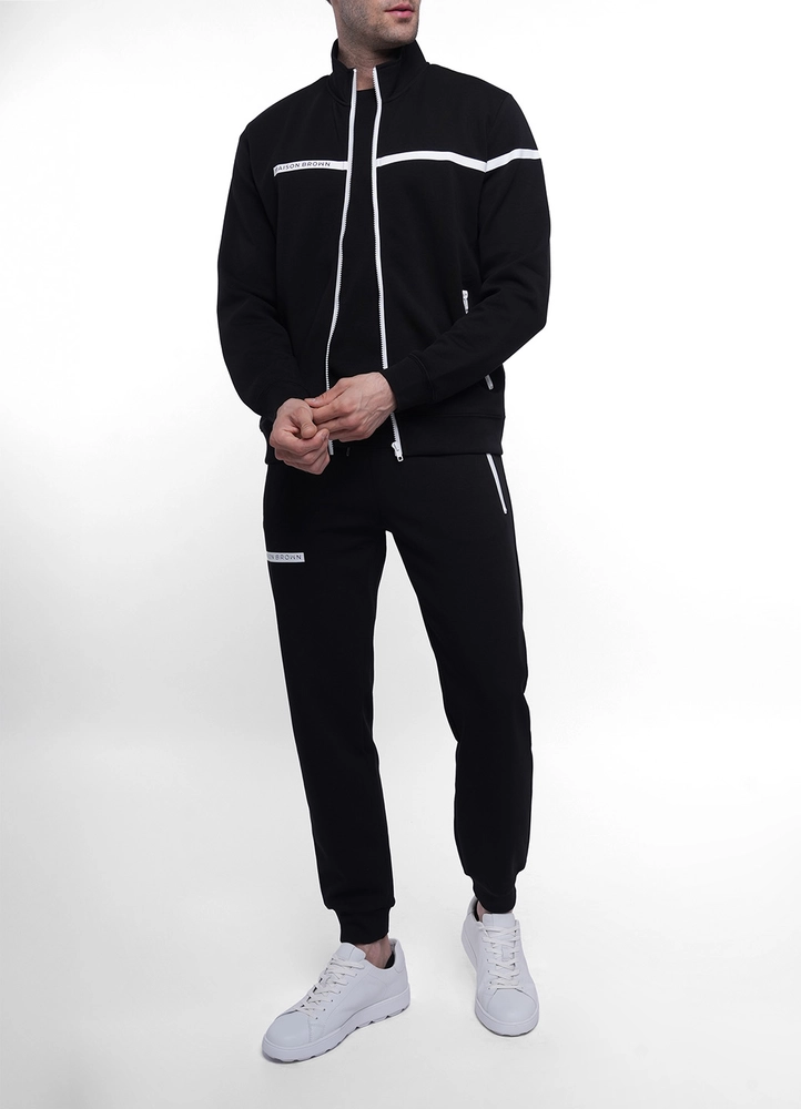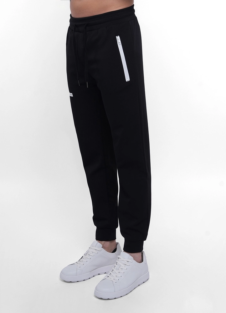 Cuffed sweat pants with contrast zipped pockets and horizontal Maison Brown print.