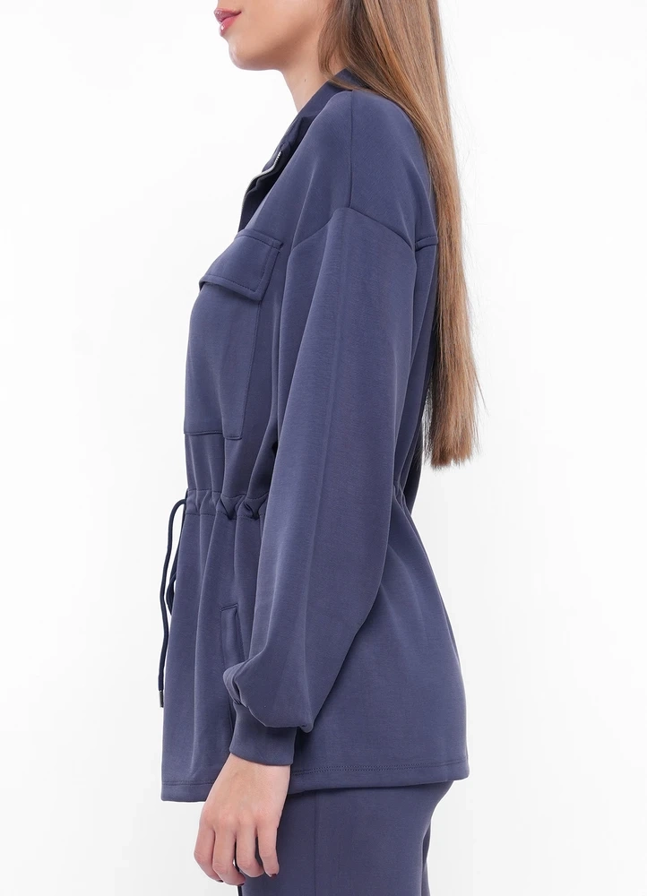 JD143- Long sweatshirt cardigan with 4pockets and drawstring belt.