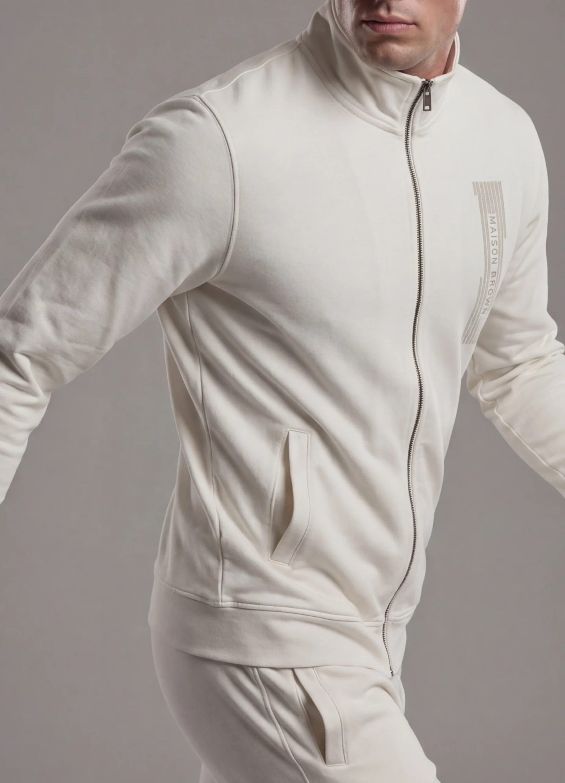 Full zip sweatshirt with vertical stripes and Maison Brown on chest.