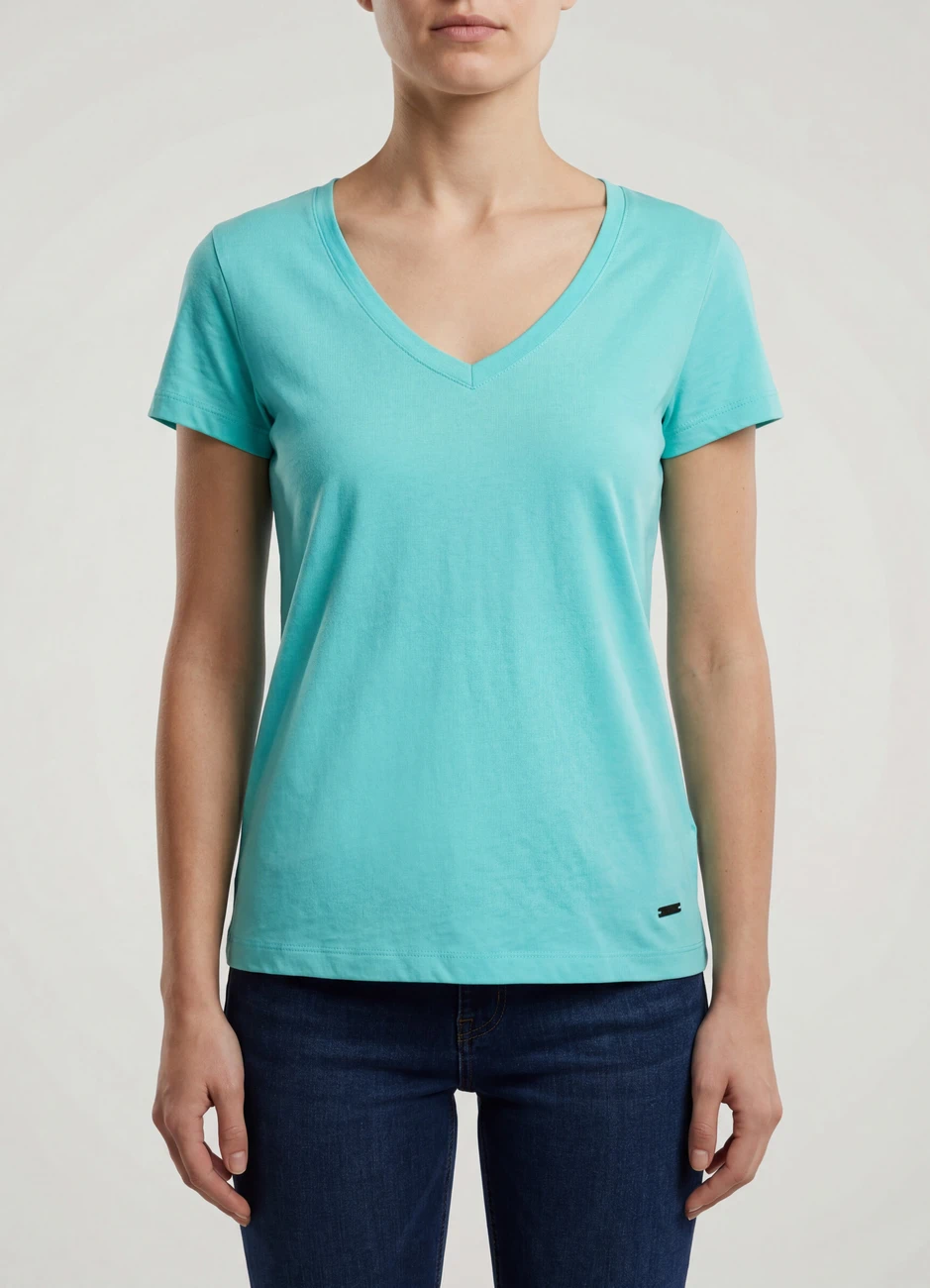 Short sleeves, vneck basic tshirt featuring a casual appearance.