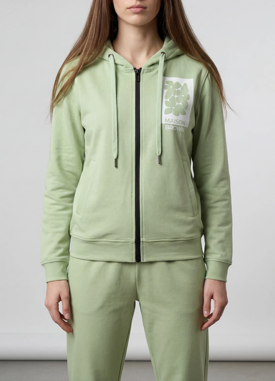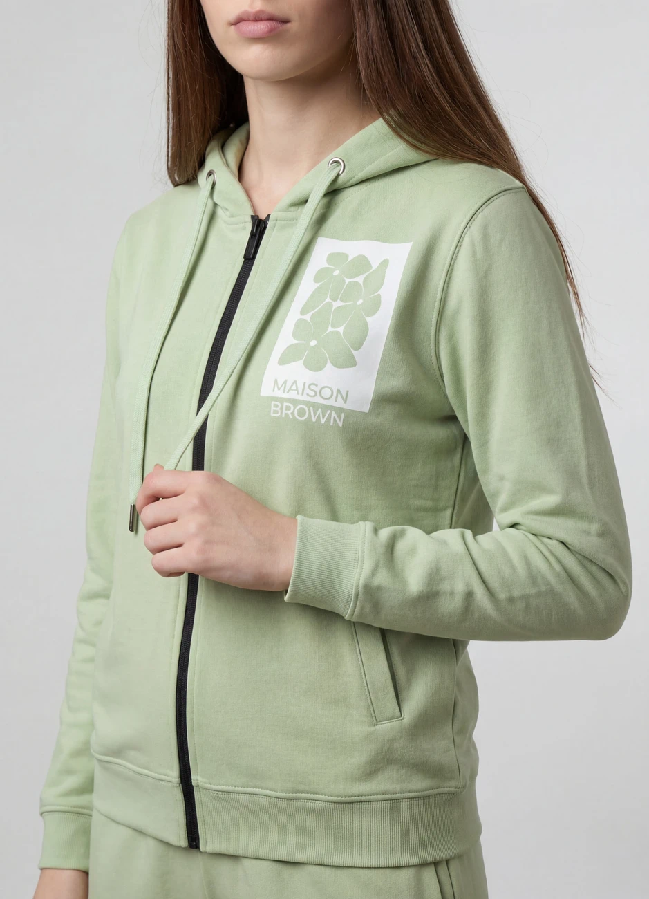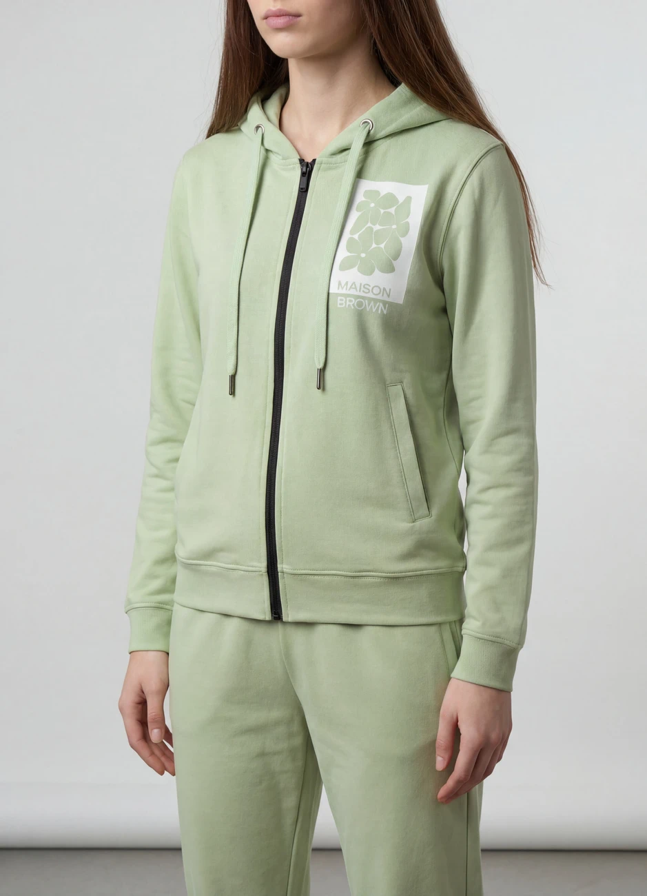 Hooded sweatshirt featuring Maison Brown logo and full zip fastening.