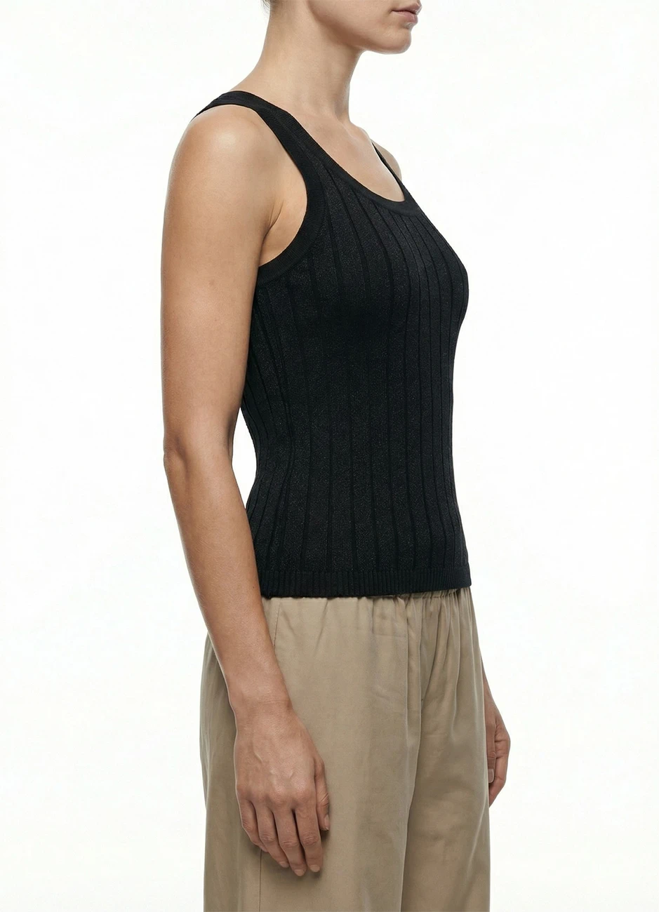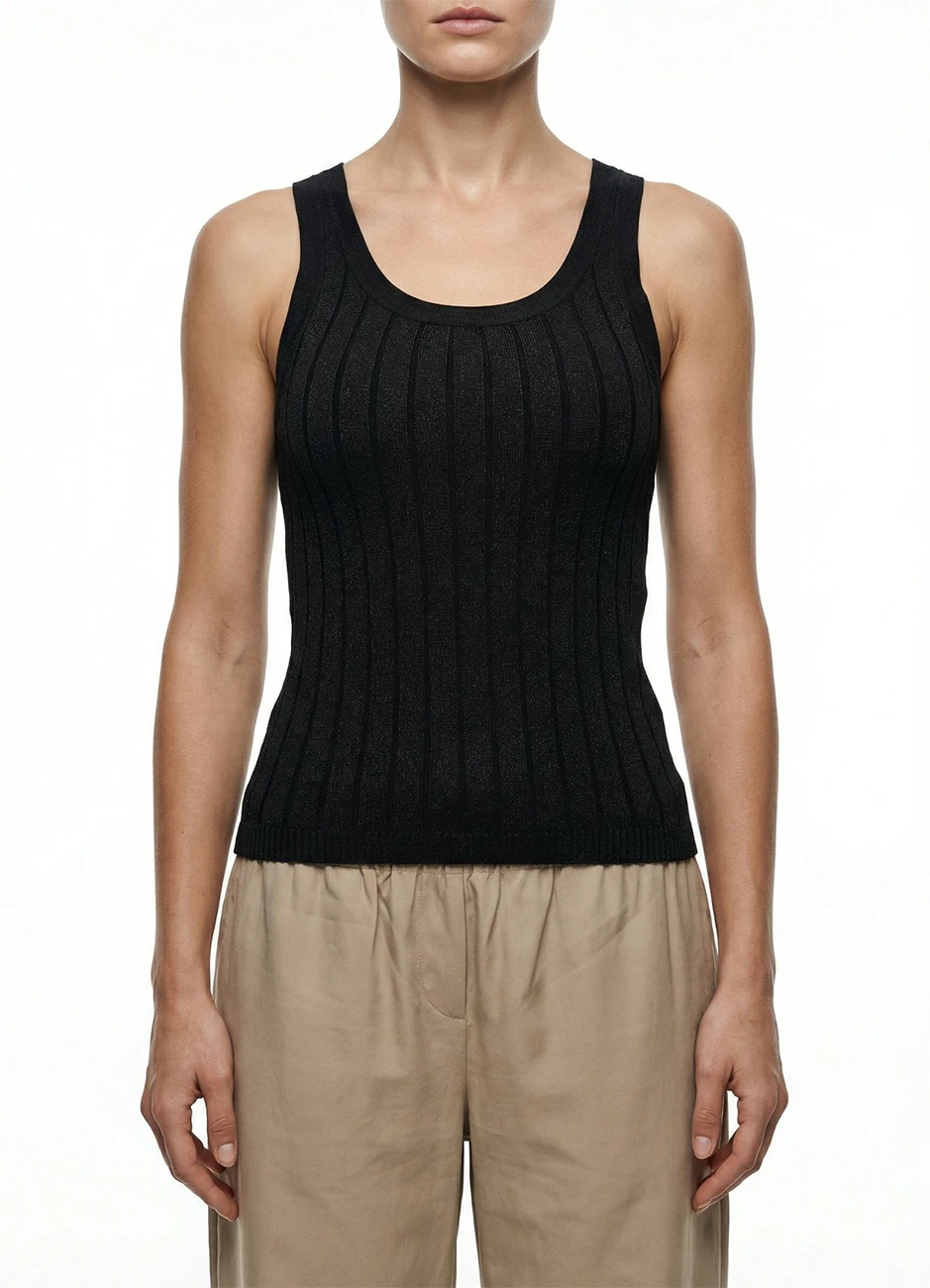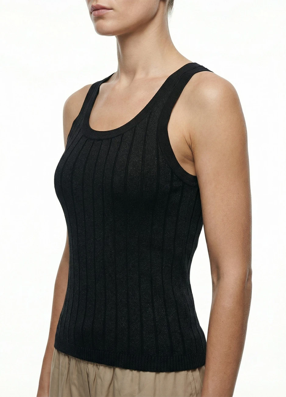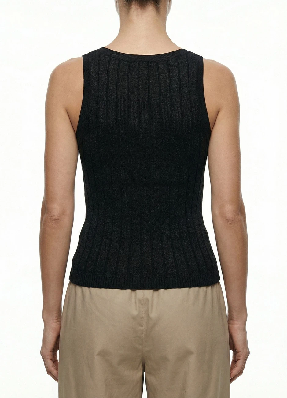 Ribbed crew neck tank top that combines basic and casual, featuring round wide neck with straight hem.
