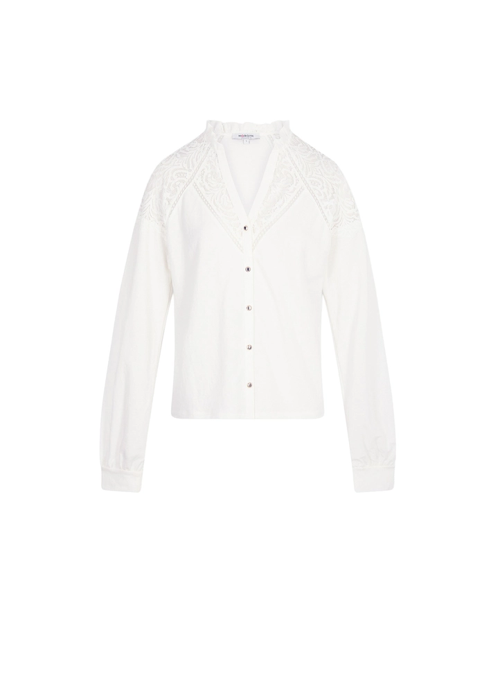 This lace blouse embodies modern and delicate femininity with a chic, timeless appeal. Designed with a straight cut to flatter all body shapes, it features a classic V-neck and long sleeves for an elegant silhouette. Subtly placed buttons add a refined detail, enhancing the sophisticated look, while the lace fabric brings a soft, feminine touch—perfect for elevated everyday wear.