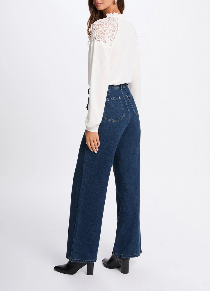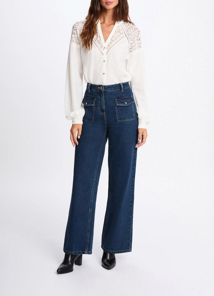Long-Sleeved Lace Buttoned Blouse