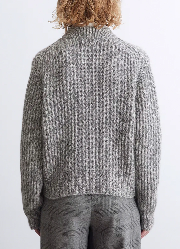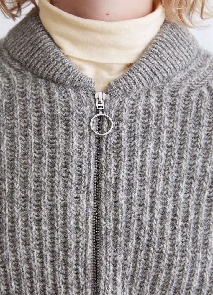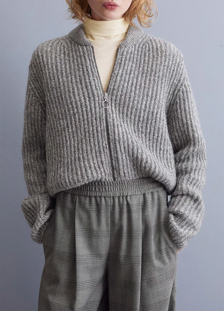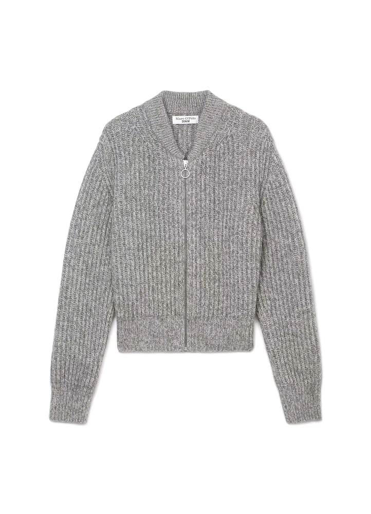 The mottled, fluffy material made from virgin wool, recycled polyamide and alpaca wool is extremely comfortable to wear and keeps you nice and warm.