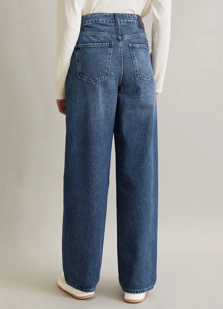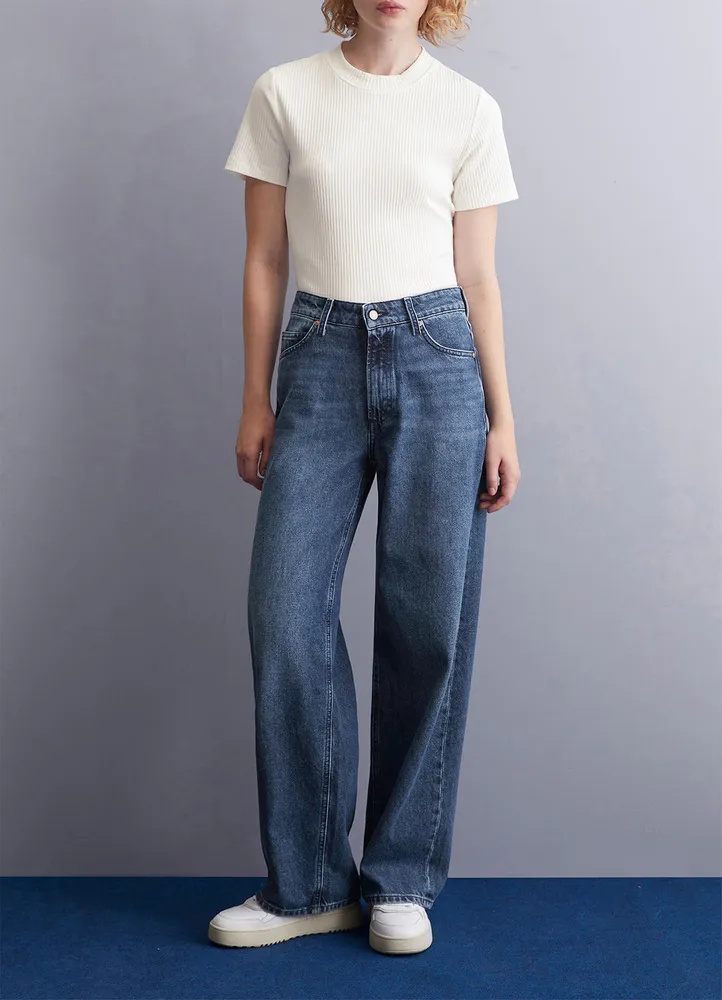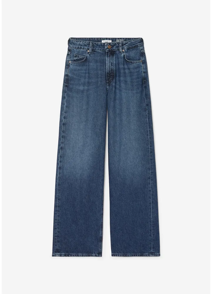 Embrace a sustainable and stylish silhouette with the Tomma wide-leg jeans from Marc O’Polo DENIM. Crafted from 100% organic cotton, these jeans offer a high-waisted fit with wide, straight, and slightly flared legs in a regular length. The classic five-pocket design features a dark blue garment wash, giving them an authentic denim look.