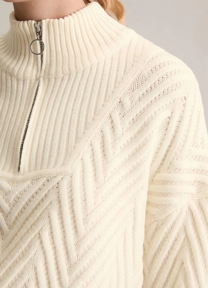 A modern key piece with a cool 80s-inspired vibe, this Marc O’Polo DENIM cropped troyer is a cozy essential for the colder months. Knitted from a fluffy virgin wool blend with recycled polyamide and elastane, it offers exceptional warmth and comfort. Designed with a half metal zip featuring a round puller, sporty raglan sleeves, and classic ribbed cuffs and hem. The relaxed, loose fit adds to its effortless appeal, while the fully fashioned, waste-reducing knit construction highlights its sustainable craftsmanship.