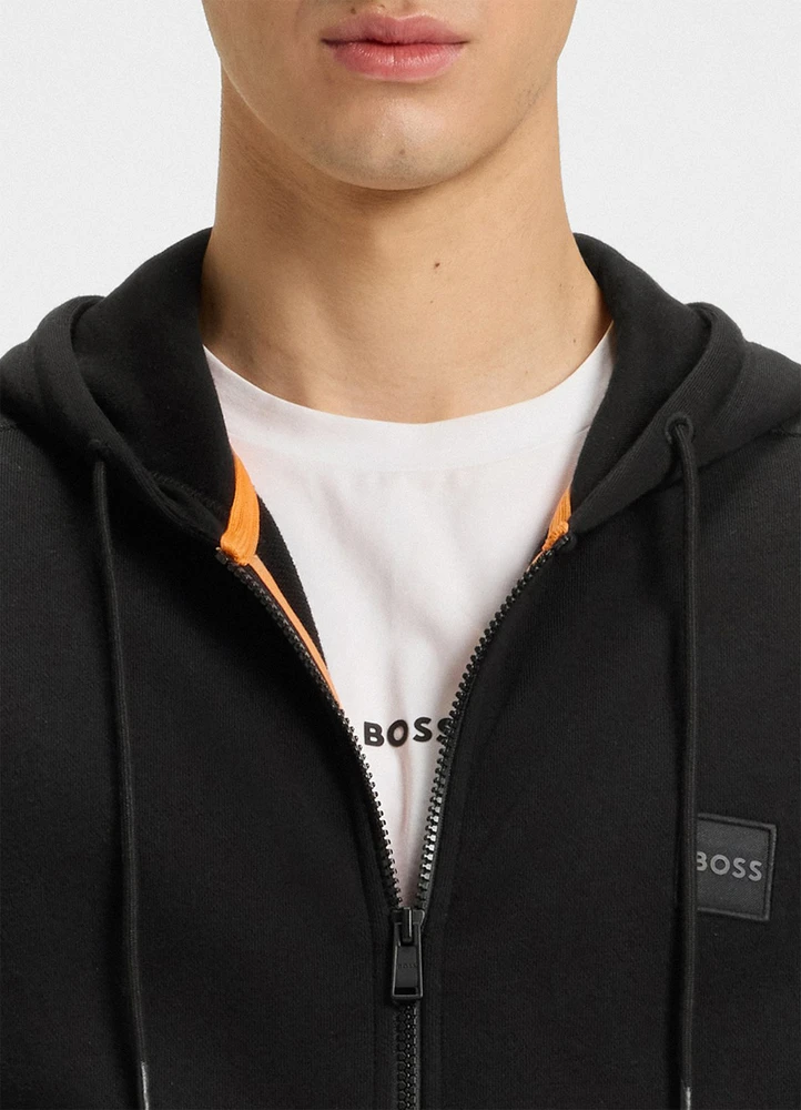 A great layer for everyday styling, this modern BOSS Menswear hoodie is designed in breathable French-terry cotton. Subtle logo patch and full front zip.