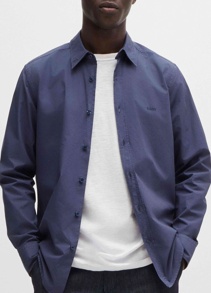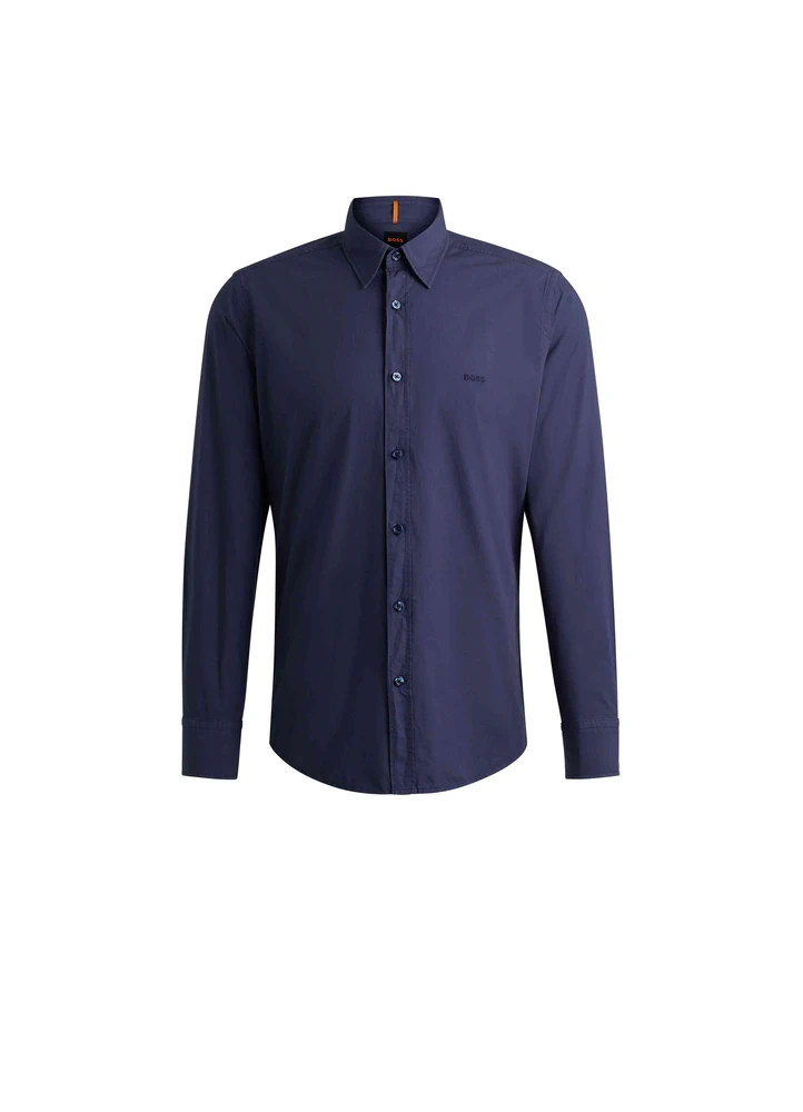 An elegant regular-fit shirt by BOSS Menswear. Featuring an embroidered logo, this long-sleeved design is crafted in breathable poplin.