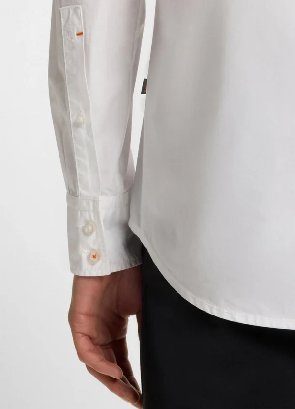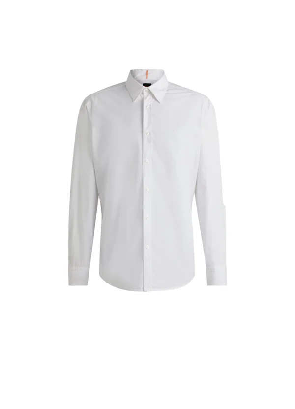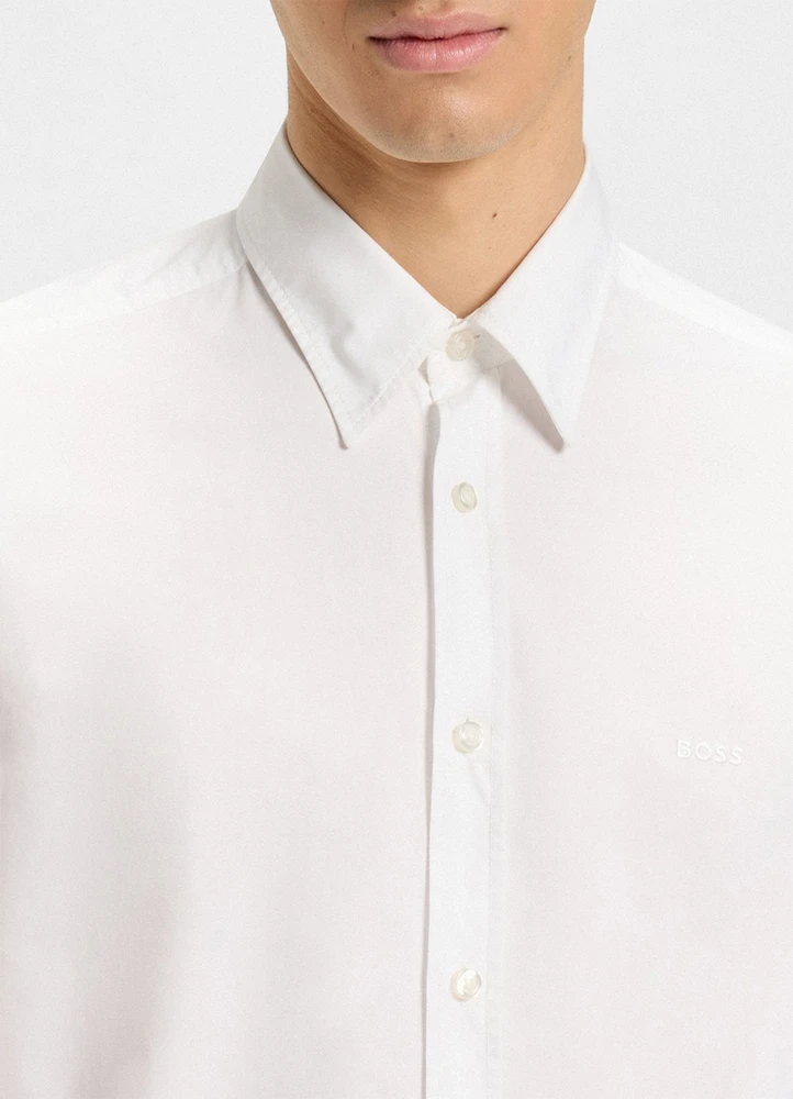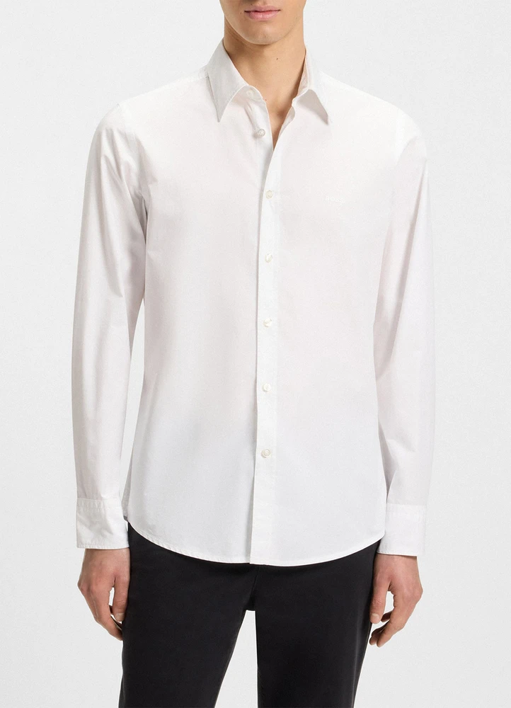 Refresh your basics with the soft cotton poplin and subtle embroidered logo of this BOSS Menswear shirt. Cut to a casual regular fit.