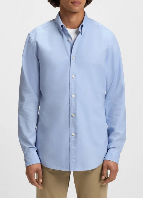 With a subtle logo and button-down collar, this BOSS Menswear shirt is a modern update to a classic. Oxford-woven cotton. Easy regular fit.