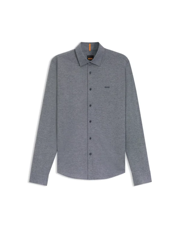 A clean and contemporary shirt in a defined fit by BOSS. This casual piece is crafted in melange piqué jersey with an embroidered logo.