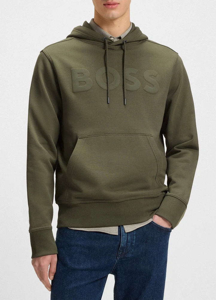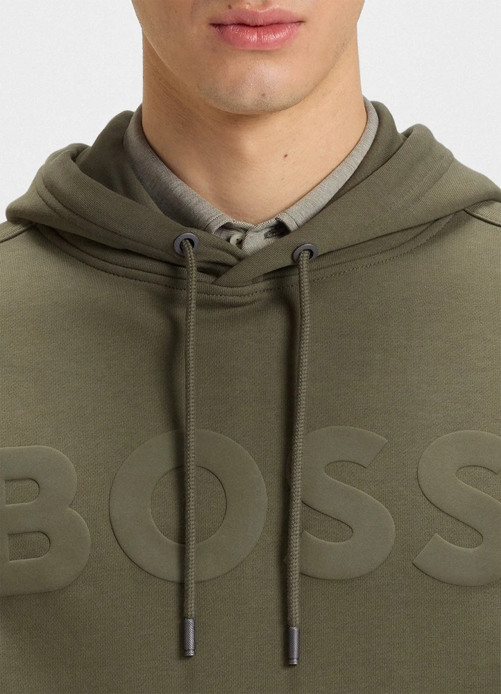 This essential BOSS Menswear hoodie features a large logo for distinctive style. Comfortable laid-back fit. Made in soft French-terry cotton.