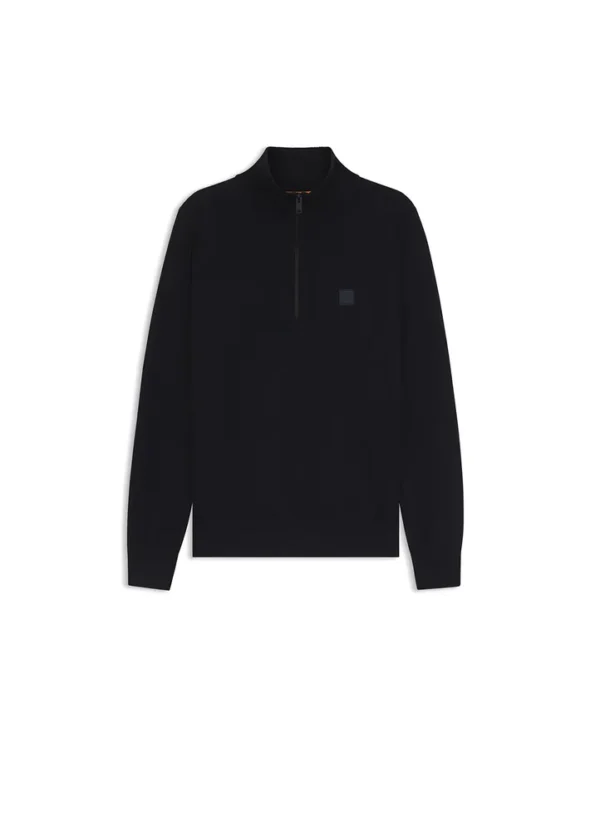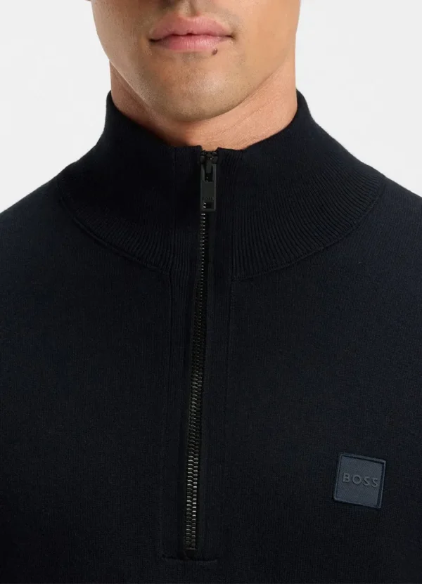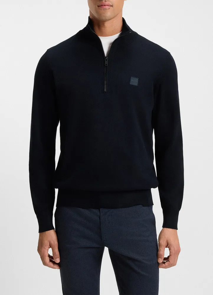 Crafted in soft cotton with a touch of luxurious cashmere, this zip-neck BOSS Menswear sweater is a refined layer. Tonal logo patch. Regular fit.