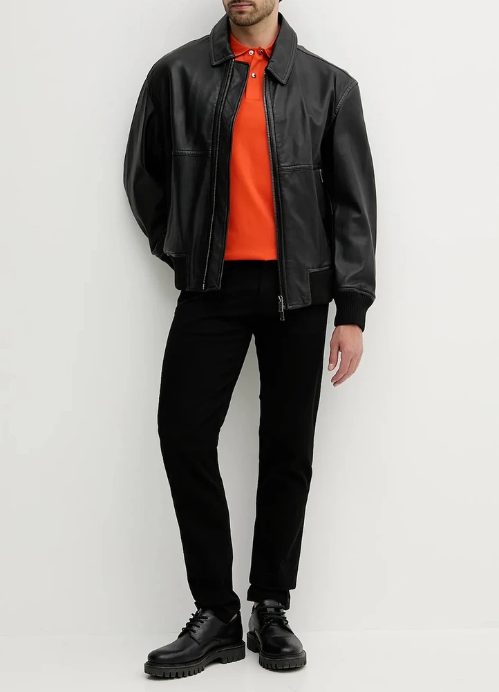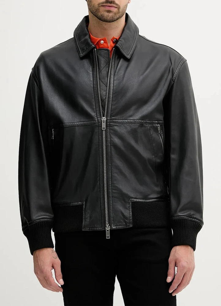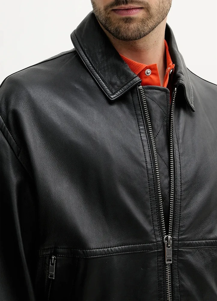 This unlined model is crafted from genuine leather. The leather material is durable and moisture-resistant.It features ribbed cuffs and hem for weather protection with two zipped side pockets.