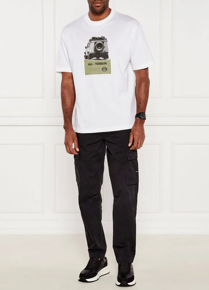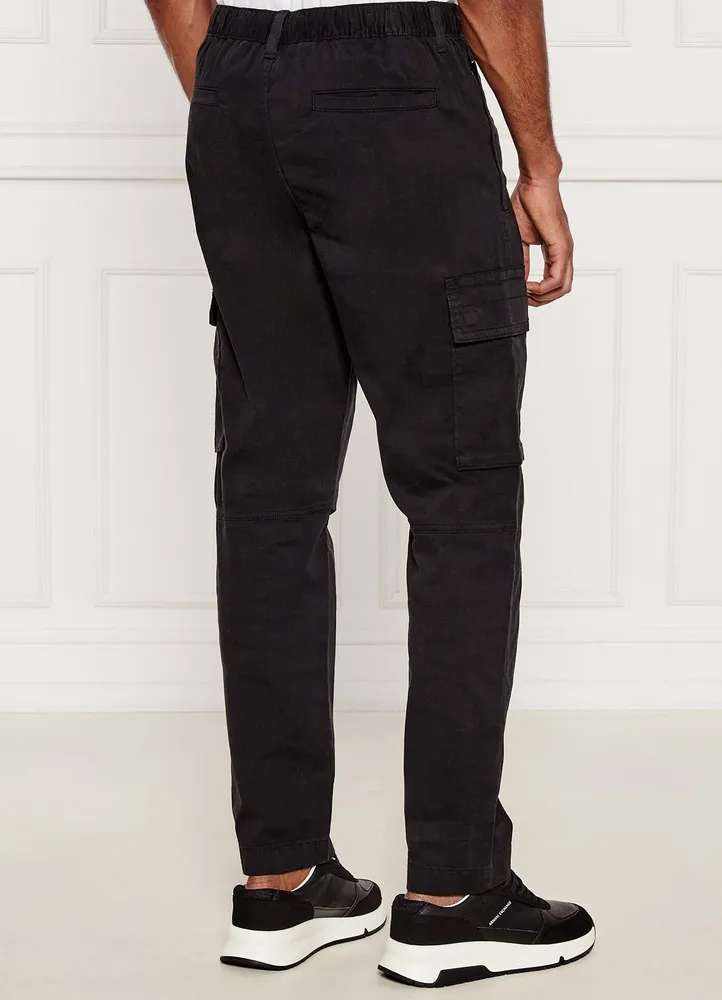 | Cargo Pants. Cargo trousers in stretch-cotton satin. With an adjustable hidden drawcord and classic cargo styling, these BOSS Menswear trousers are a casual must. Cut in overdyed stretch-cotton satin for comfort. 97% Cotton, 3% Elastane. |