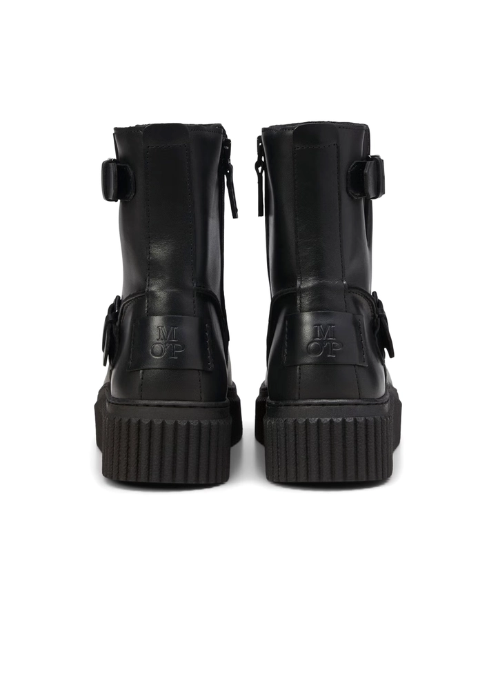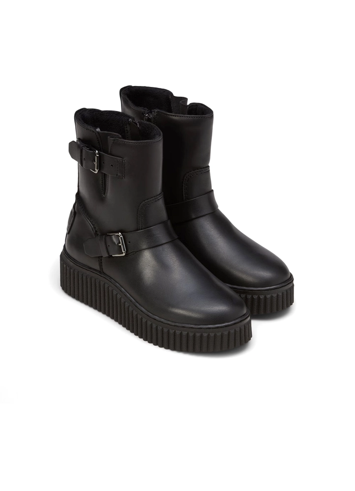 With decorative straps with an adjustable metal buckle: these Bianca short-shaft boots made from high-quality cowhide are all about clean lines and fine details. The inside zipper makes it easy to slip them on, while the fluffy warm lining made from breathable microfiber is pleasantly warm. The recycled microfiber insole with memory foam ensures a soft walking sensation. The lightweight TR platform sole with a grooved structure on the side adds a modern accent. Made in Portugal.