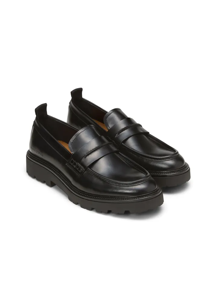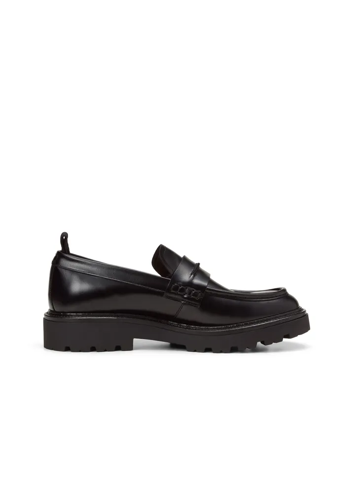 A smart look with a modern twist: this loafer made from brushed calfskin boasts a subtle shine and finely crafted details. The striking decorative stitching on the buckle underlines the high-quality look, while the classic moccasin stitching and the canvas loop on the heel add a casual touch to the design. Inside, breathable, recycled microfiber and a cowhide insole with memory foam ensure pleasant comfort. The profiled TR outsole is lightweight and functionally rounds off the overall look. Made in Portugal.