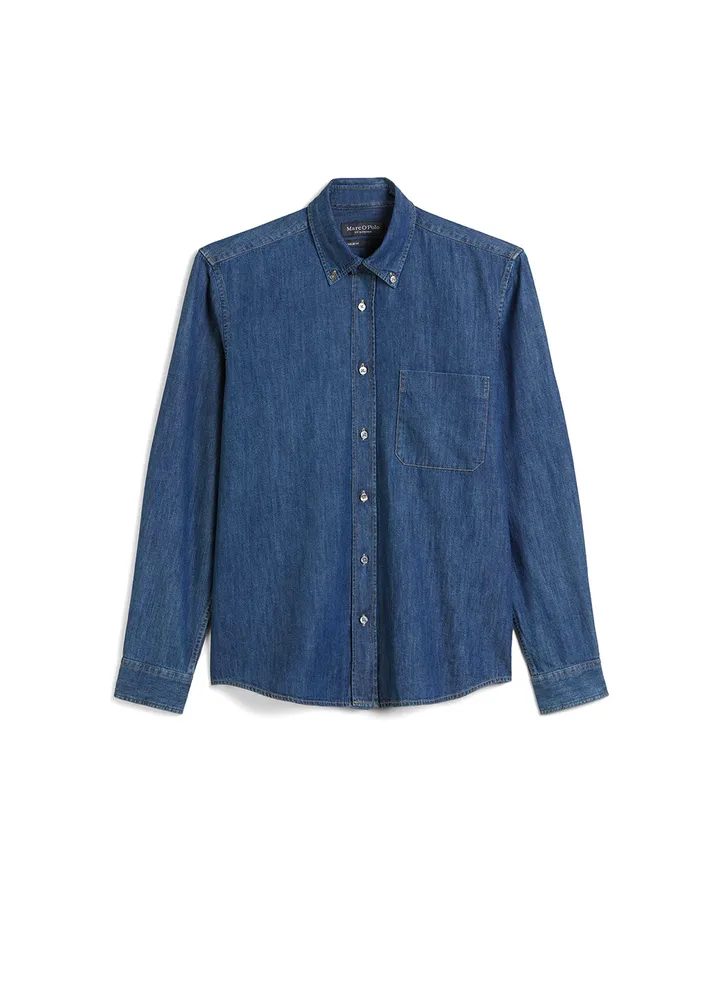 Casual denim shirt made from certified organic cotton – light, soft, comfortable and versatile. With a classic button-down collar, full-length button placket with logo buttons, long sleeves with two-button cuffs and contrasting stitching. The breast pocket and rounded hem skilfully accentuate the modern look. Ideal for relaxed styles in the city, in the office with a relaxed dress code or casually over a T-shirt at the weekend.