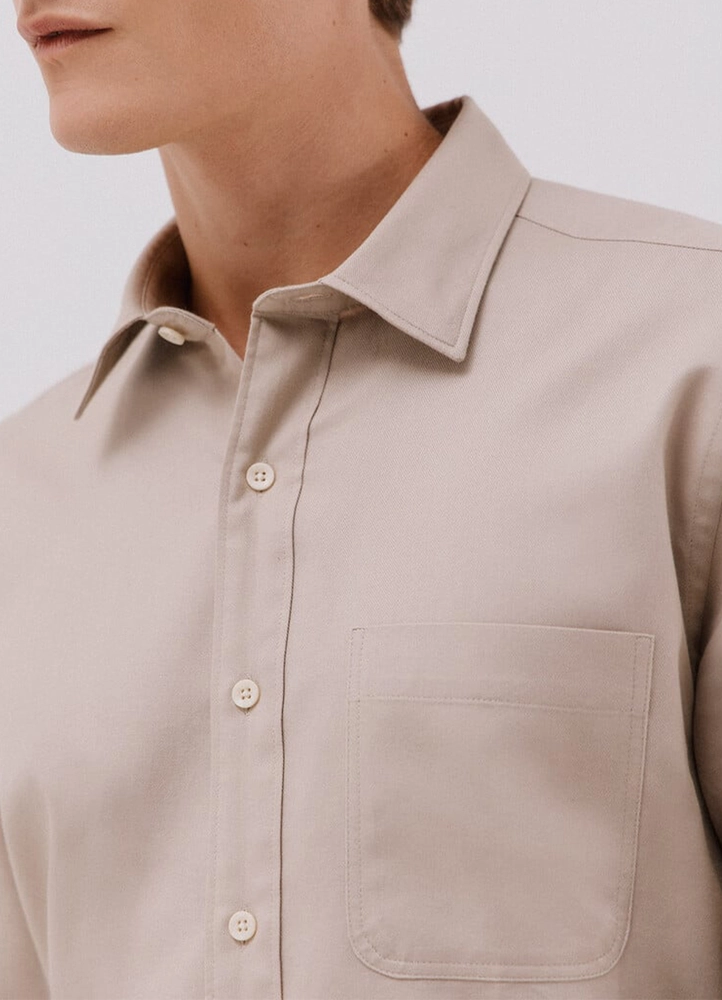 Long sleeve, regular fit, cotton and TENCEL™ Lyocell blend shirt with thermoregulatory softness, a soft collar without buttons, and a chest pocket.