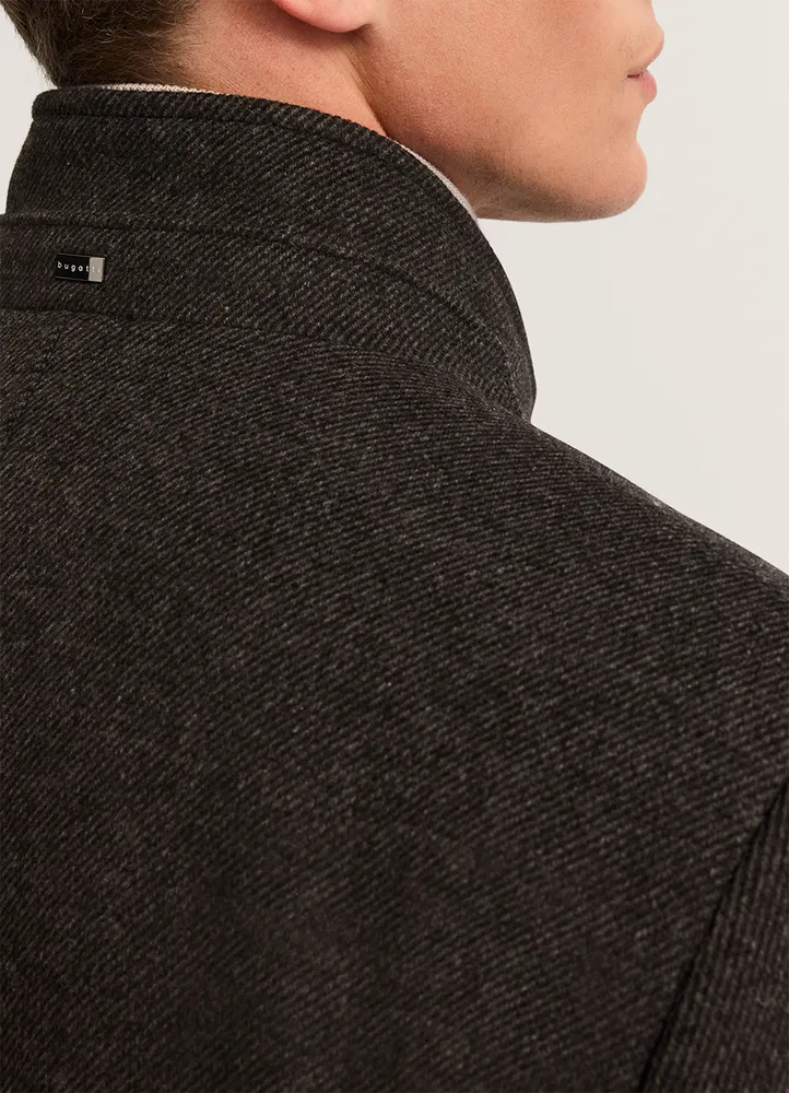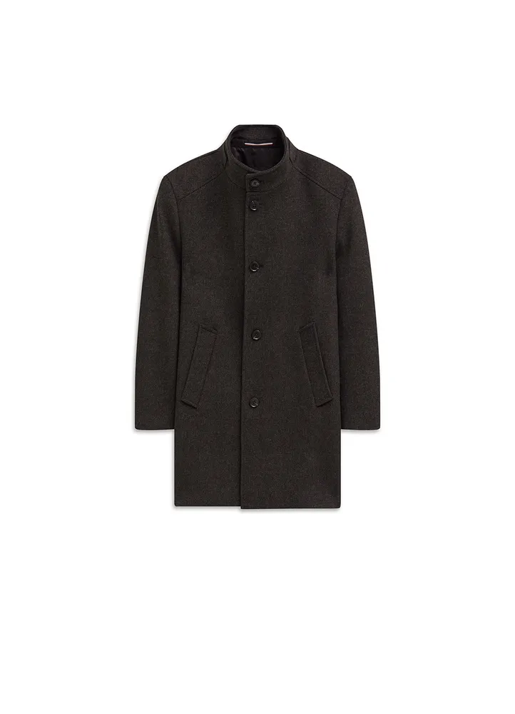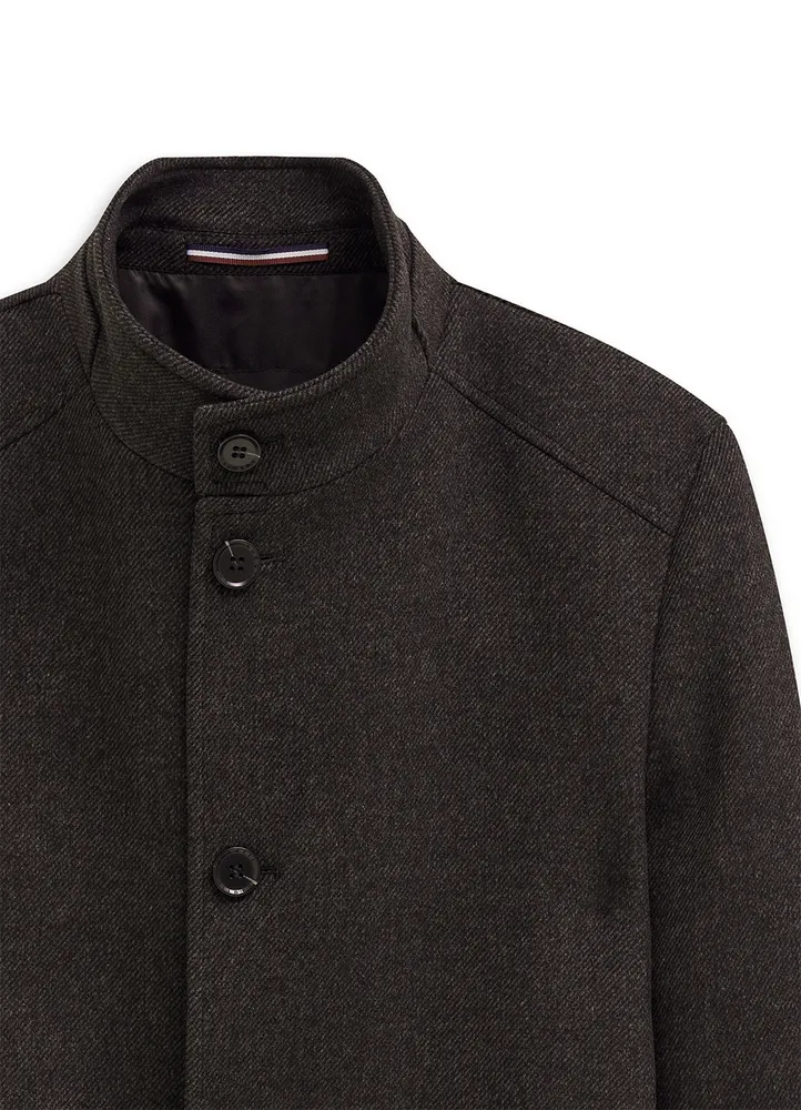 Coat.Wool tonal diagonal full buttoned coat .55% Polyester, 40% Wool, 5% Other Fibers.