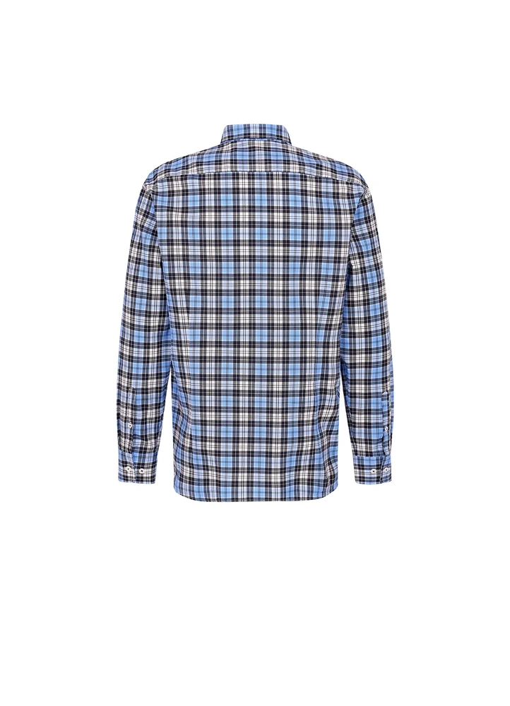Checked easy care button down shirt with tape on placket and a practical chest pocket.