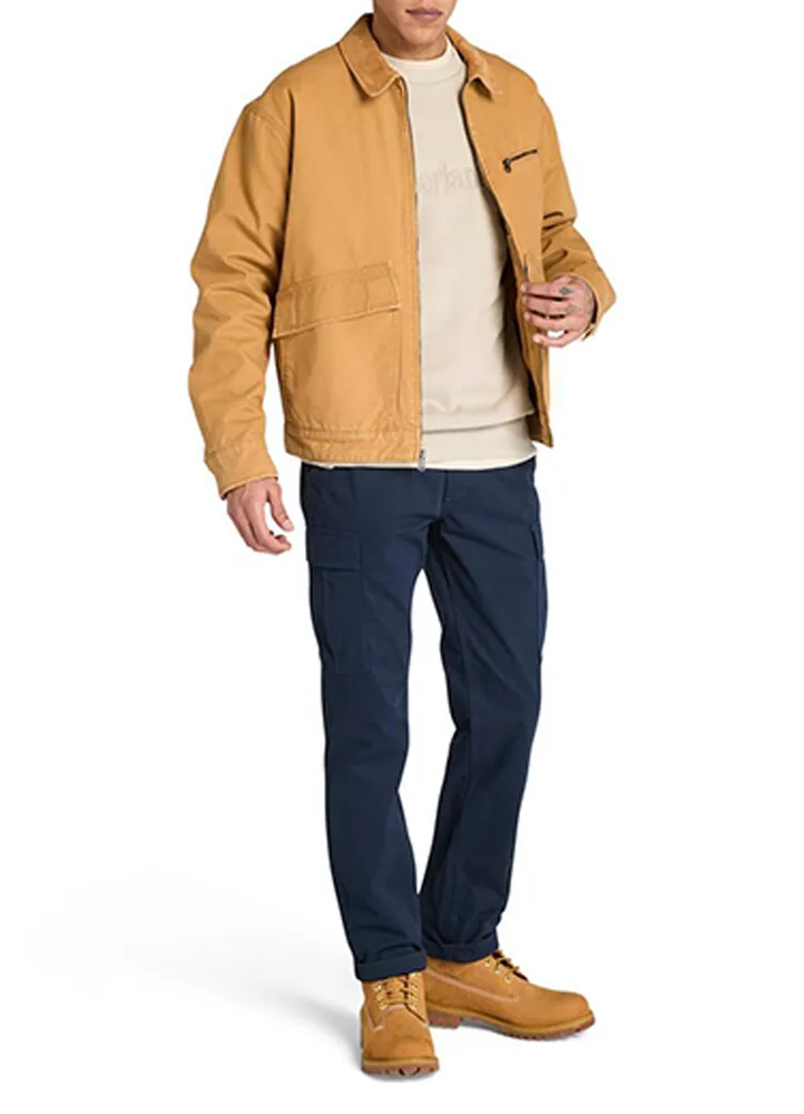 This twill cargo pant has a relaxed tapered fit, multiple pockets, a contrast internal waistband, and a 100% organically grown cotton composition.