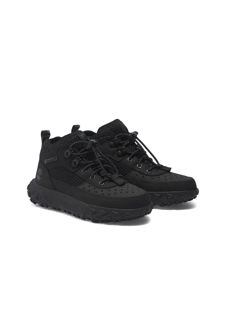 These GreenStride™ Motion 6 hikers feature a premium Timberland® leather and ReBOTL™ fabric upper containing at least 50% recycled plastic. A “Does it Fit?” sockliner helps ensure these shoes stay on your little one’s feet, while the Defender Repellent Systems® treatment helps keep the product looking as good as new.