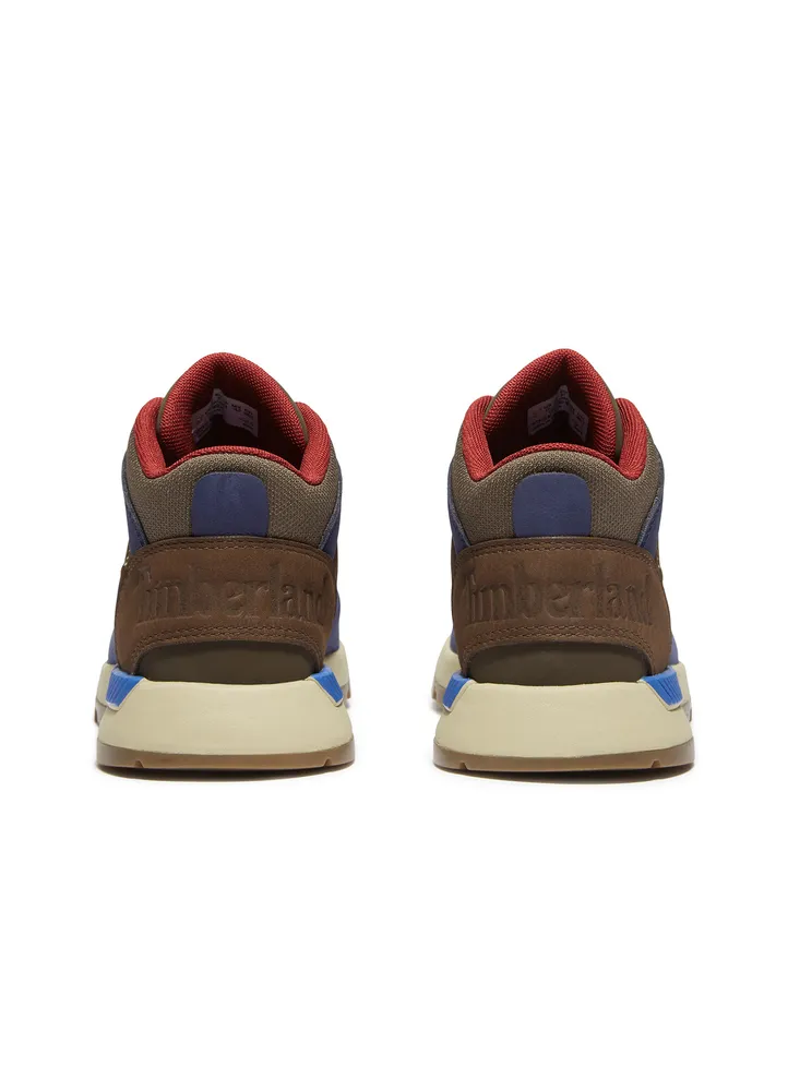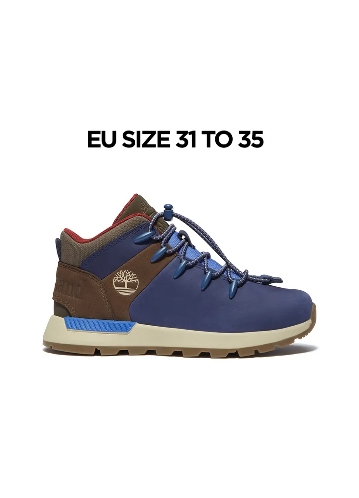 Our mixed-media, mid-height kid’s sneakers are built for all-day comfort and rugged outdoor play with quality materials. They feature Premium Timberland® leather uppers and ReBOTL fabric lining containing at least 50% recycled plastic. There’s also a rubber lug sole for traction, a cushioned OrthoLite® foam footbed, and a “Does it Fit?” sockliner that indicates when it’s time for a new pair.