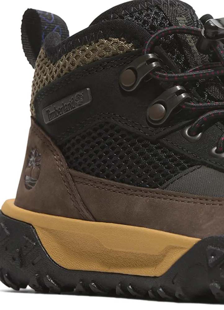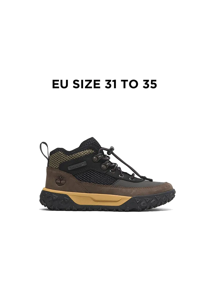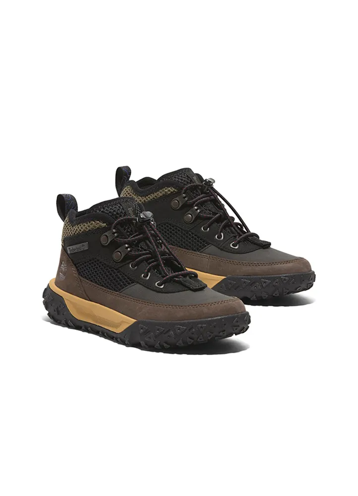 These GreenStride™ Motion 6 hikers feature a premium Timberland® leather and ReBOTL™ fabric upper containing at least 50% recycled plastic. A “Does it Fit?” sockliner helps ensure these shoes stay on your little one’s feet, while the Defender Repellent Systems® treatment helps keep the product looking as good as new.